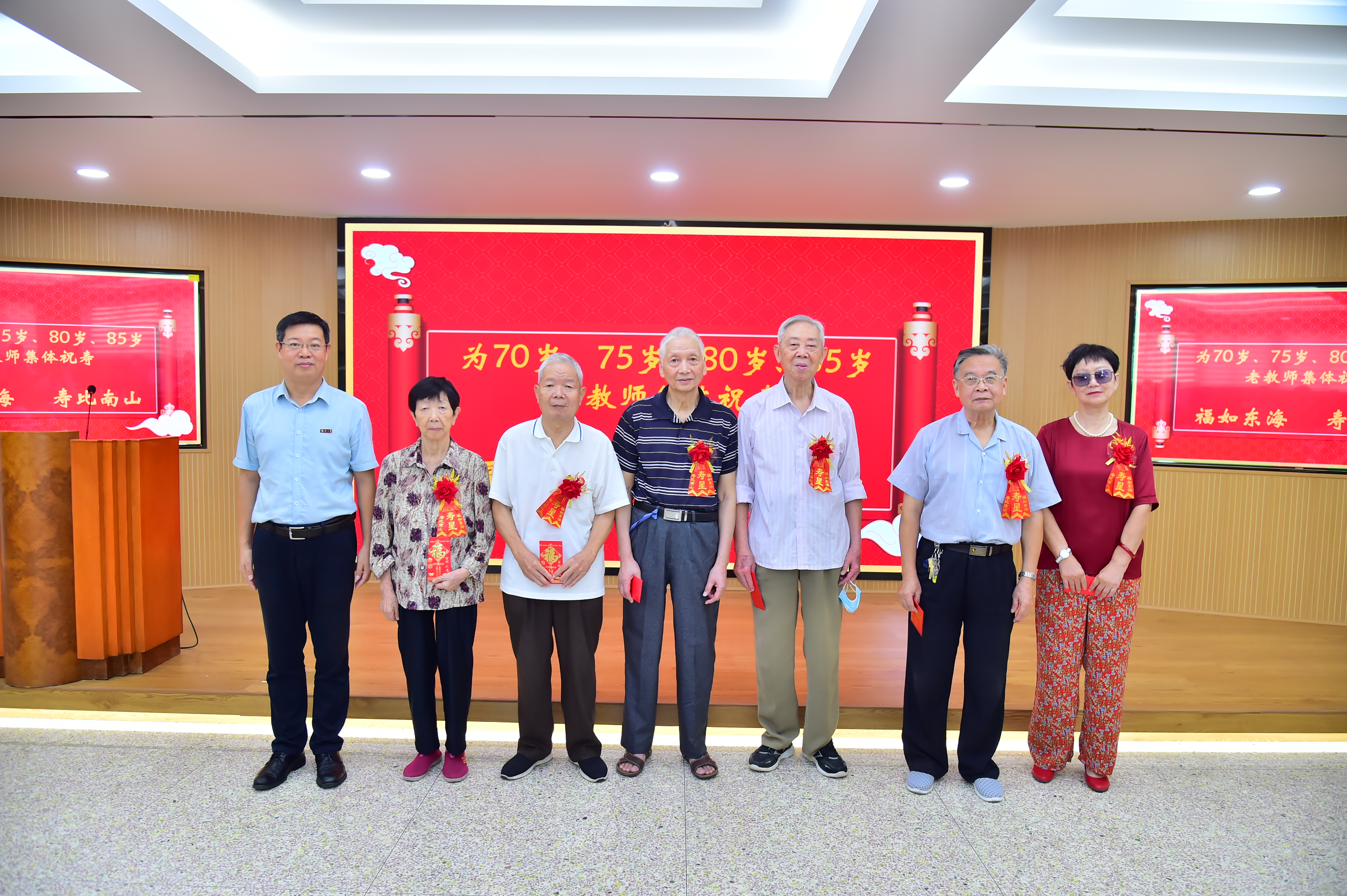 曾忠毅主任为老教师们献上祝福,祝愿老教师们健康快乐、幸福平安。同时,施卫华书记为70岁、75岁、80岁、85岁老教师集体祝寿,代表学院为他们献上一份心意。