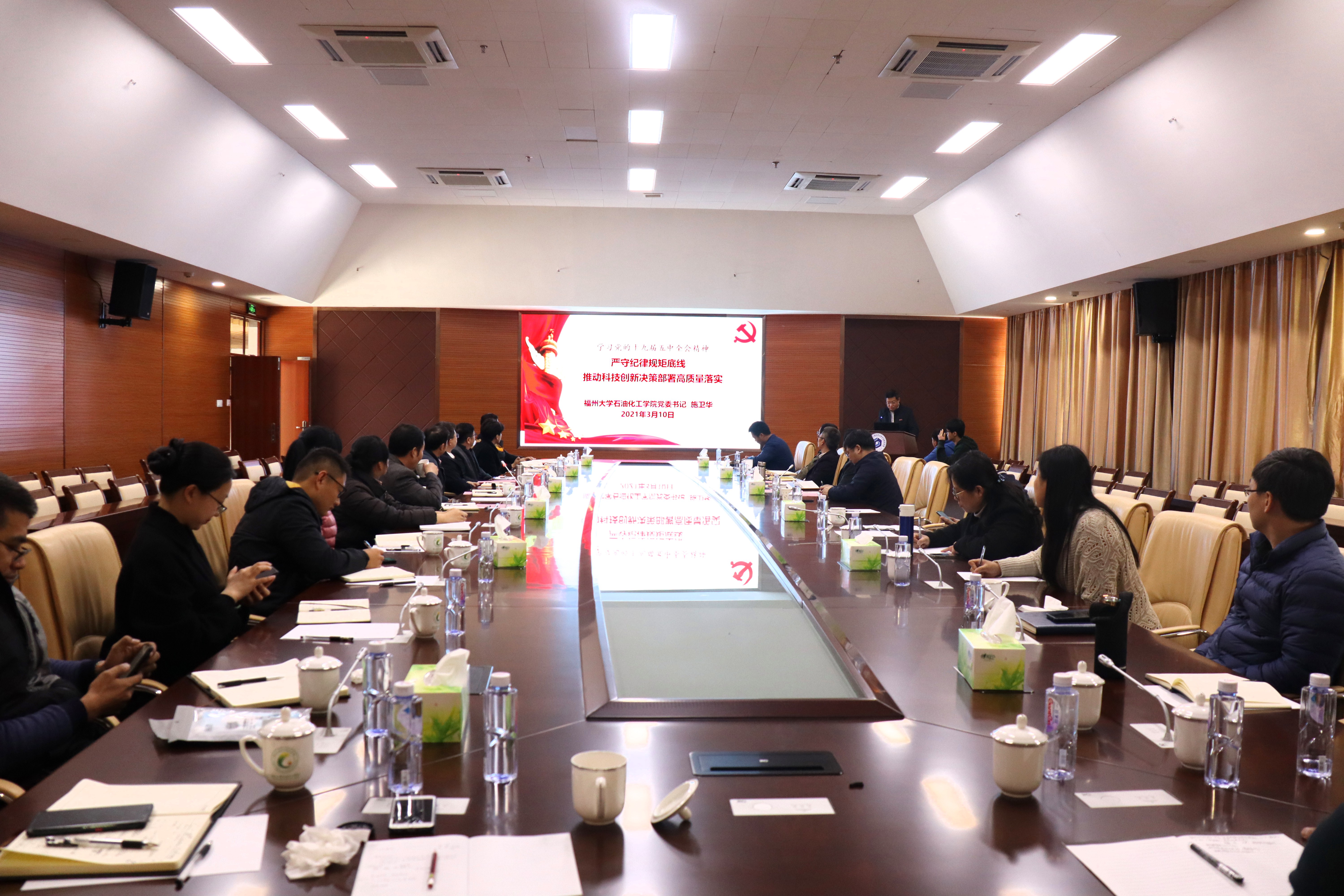 3月10日上午,石油化工学院党委书记施卫华在泉港校区,为学院党政班子成员、行政办公人员及清源创新实验室全体人员作题为《学习党的十九届五中全会精神:严守纪律规矩底线,推动科技创新决策部署高质量落实》的廉政党课。