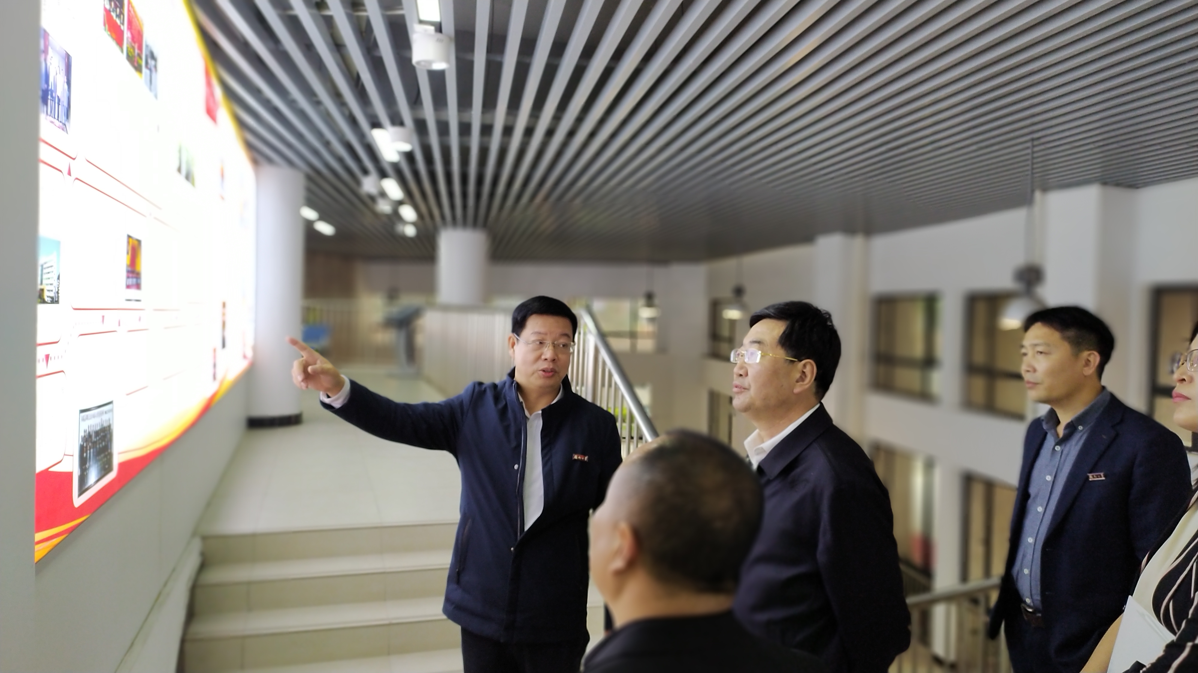 赵春光书记一行首先参观了院史长廊,施卫华书记向客人详细介绍了学院的发展历史、学科建设、科研成果等基本情况。