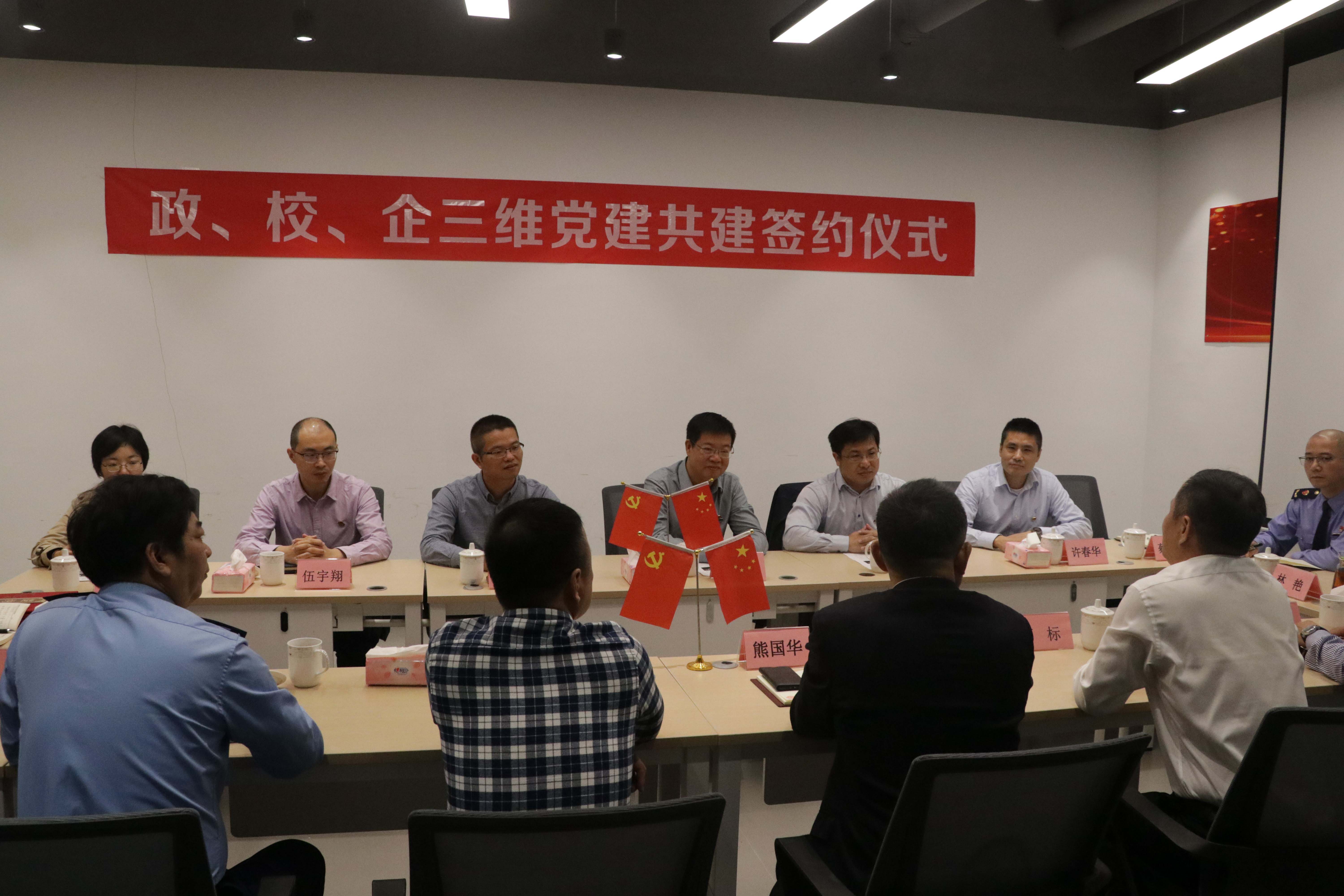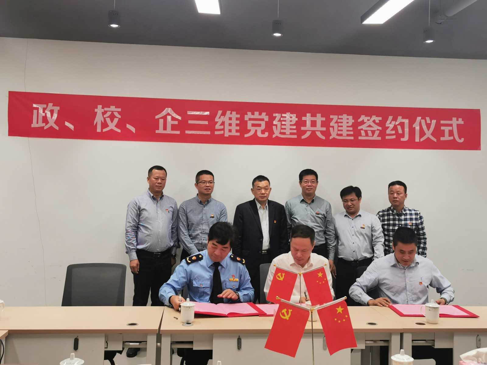 在共建三方领导嘉宾的见证下,三方支部代表正式签订了支部《党建共建协议书》,预示着政、校、企三维党建共建活动正式拉开序幕,开启三方深度融合、协同发展、合作共赢新篇章。
