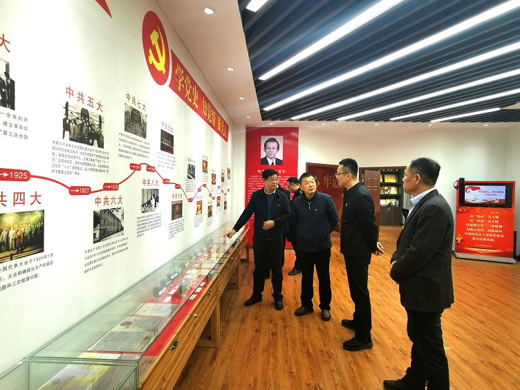 “三种精神”为核心内容,立足学院、面向全校开放的党员干部教育培训基地(初心堂)的基本情况。施书记介绍了基地的背景、主要功能和学院党员干部教育培训工作开展情况,并表示欢迎政、企党员来基地参观调研和共同学习。