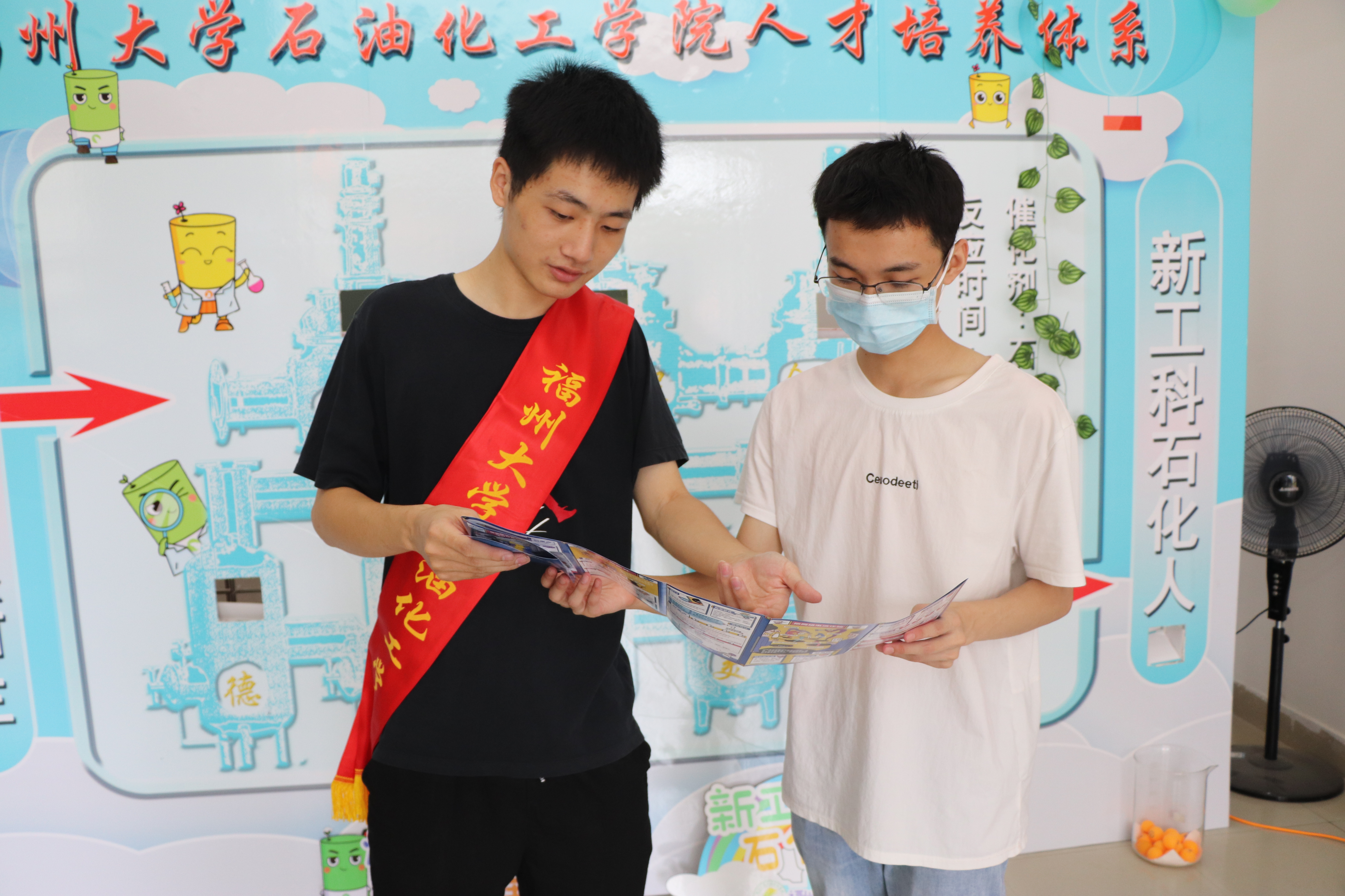 学院发挥专业特点,以特别的方式迎接新生:新生将贴上名字象征自己的乒乓球放入轨道中,经过“全员”、“全过程”、“全方位”、“德“、“智”、“体”、“美”、“劳”的反应器,以石油化工学院人才培养体系为“催化剂”,经过四年的“反应时间”,成为“新时代化工人”。该过程象征了2020级新生将通过石化学院的培育体系,最终成长为合格的社会主义建设者和接班人,也寄托着学院对每位新生成才的希冀。在迎新点处,学院还在现场展示化工相关的3D打印技术,让新生在入学之际,感受到了学院的专业氛围,鼓励他们不断探索化工行业的前沿技术。