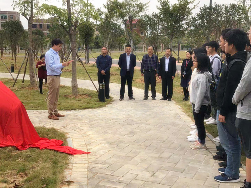 在一列师生的掌声中,张忠富先生与叶志清书记为“永芳丹桂园”开园揭幕。