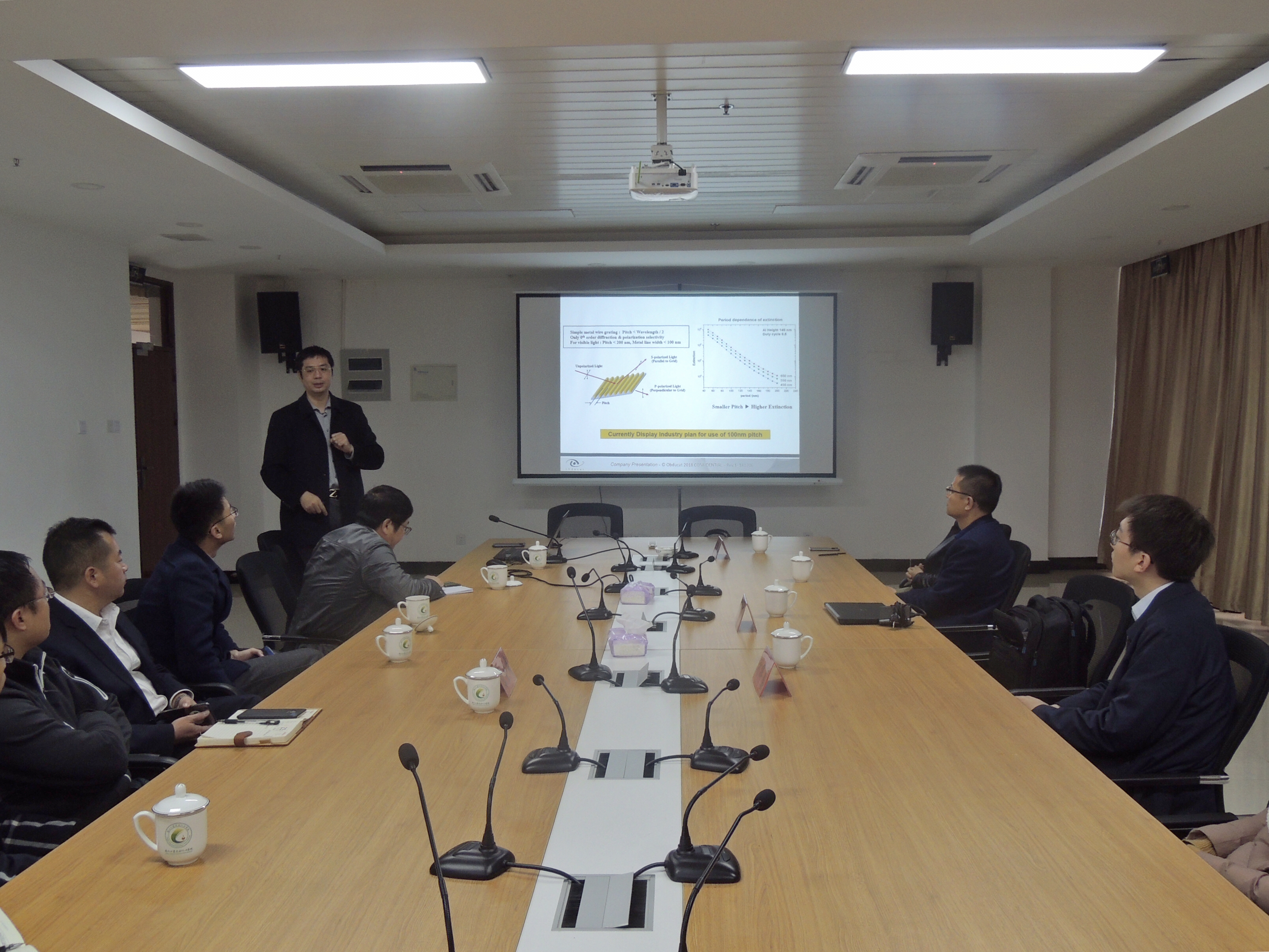 2018年12月12日上午, Obducayt公司纳米压印技术研发工程师罗刚博士到石油化工学院泉港校区交流指导。石油化工学院陈全成副院长等陪同。随后,罗刚博士为学院师生做了“基于纳米压印技术的微纳加工技术研发及工业化”主题报告,介绍了技术研发内容和研究成果转化产品,并鼓励学生努力学习化工知识为科研发展贡献技术力量。