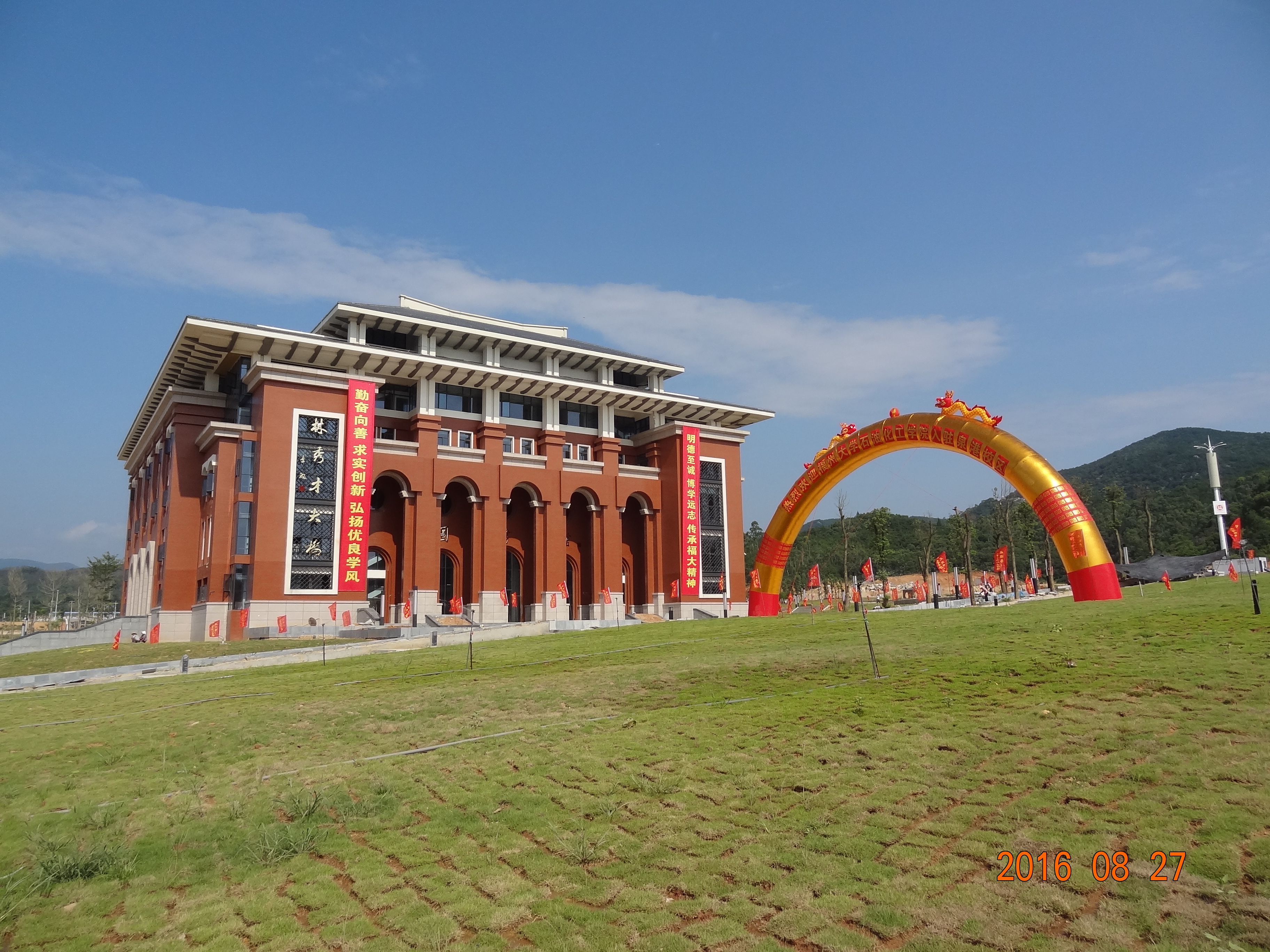 石油化工学院入驻泉港校区”的拱门和高挂着“明德至诚 博学远志 传承福大精神 勤奋向善 求实创新 弘扬优良学风”横幅的图书馆,直达学生宿舍楼下。首批120名师生顺利入驻泉港校区,标志着91吃瓜