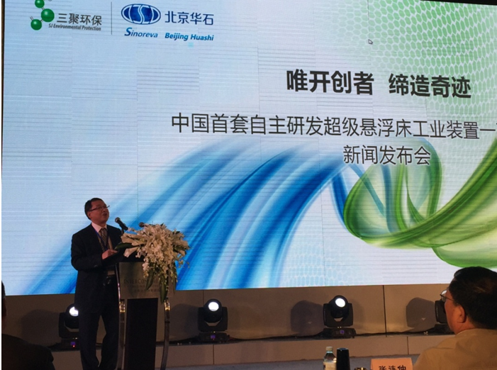 2016415上午,由北京三聚环保新材料股份有限公司和北京华石联华能源科技发展有限公司开发的我国首套自主研发的超级悬浮床工业装置一次开车成功新闻发布会在北京举行。我校黄志刚副校长应邀出席该发布会并介绍了我校化肥催化剂国家工程中心与三聚环保校企深度融合发展和共同开发悬浮床加氢催化剂的历程。