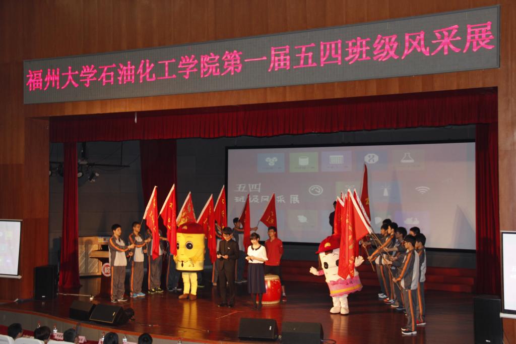 石油化工学院第一届五四班级风采展于图书馆博学厅隆重举行。莅临本次的评委嘉宾有石油化工学院党委副书记刘玮,学生处教育管理科科长岳志强,校团委宣传部部长杜领军,石油化工学院团委书记蒋林娟,以及各级辅导员林泉富、翁森、林鸿平。各班级的代表和学院团委学生会的各部部长作为大众评委。