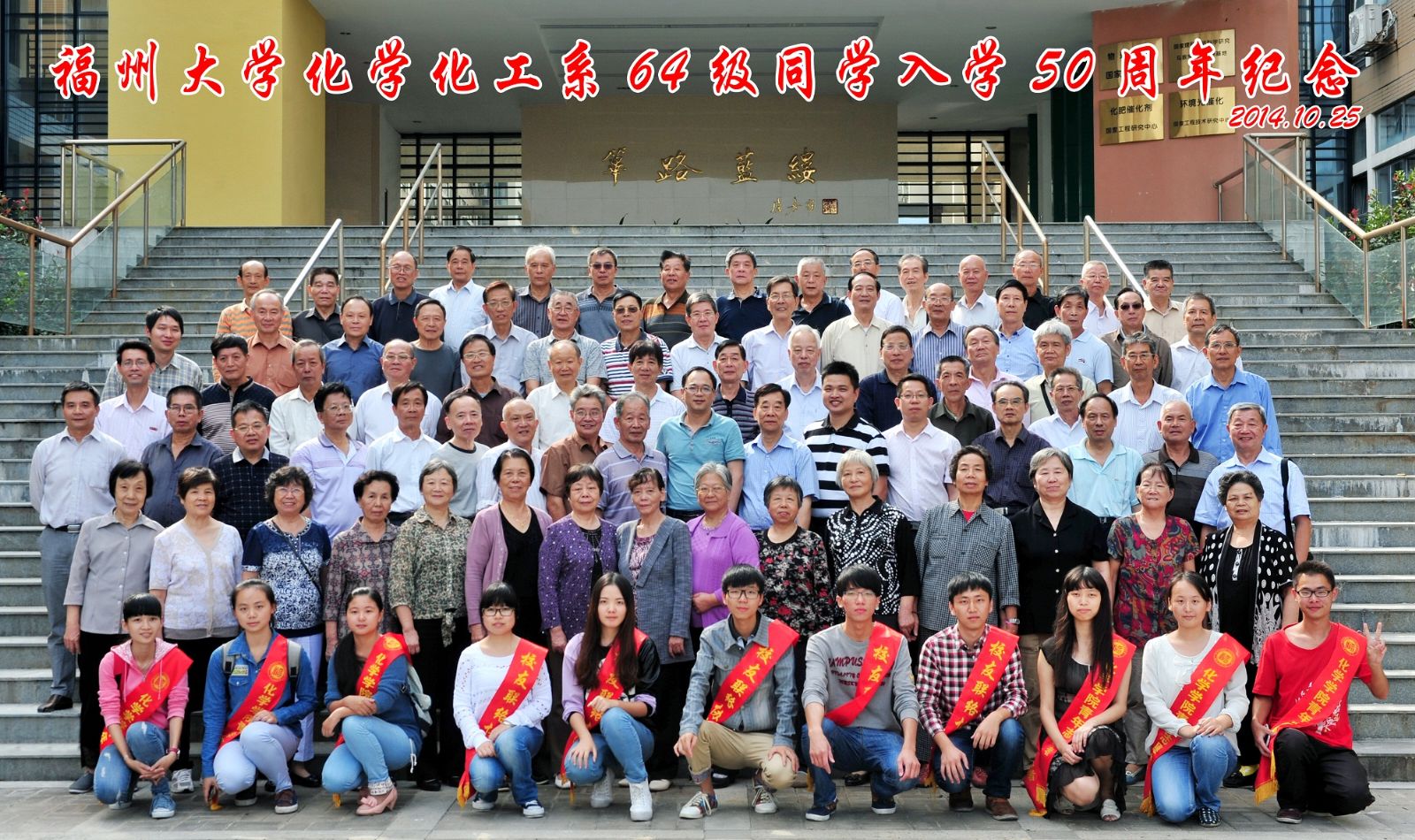10月25日,在学校校庆日之际,1964级化学化工系校友一行70多人从五湖四海返回母校纪念入学50周年。