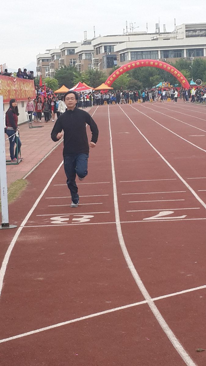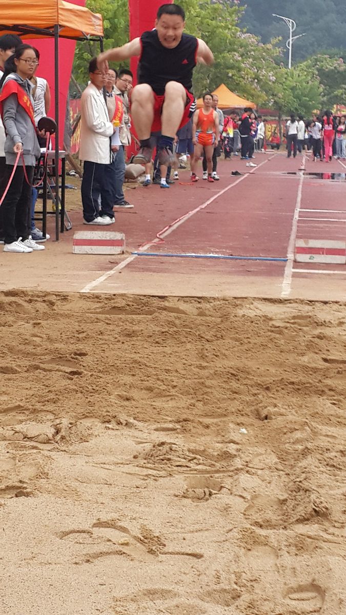 陈晓晖教授在男教中跳远比赛中奋力一跃