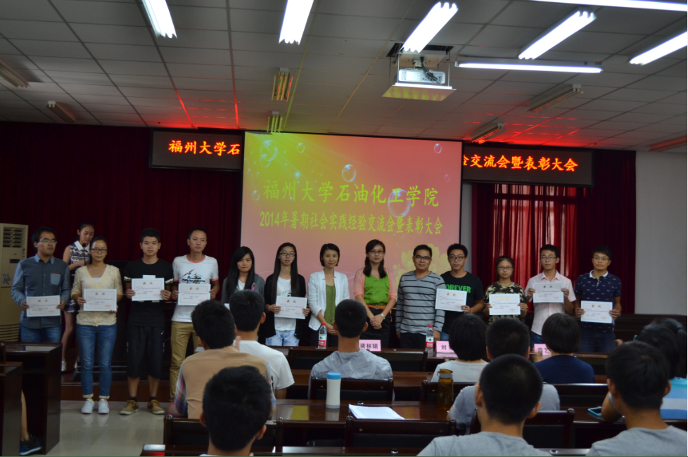 石油化工学院2014年暑期社会实践经验交流会暨表彰大会在嘉锡楼413报告厅召开,院党委副书记刘玮,团委书记蒋林娟,11级辅导员陈艺全出席本次会议。会议由唐诗萌同学主持。