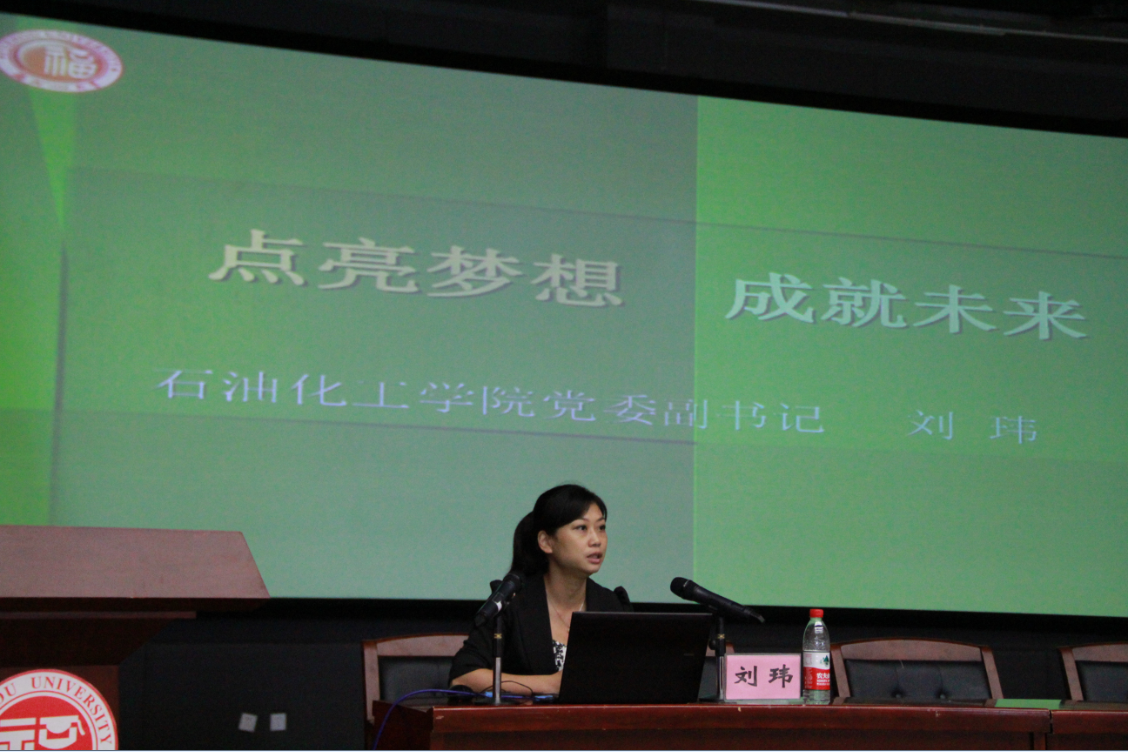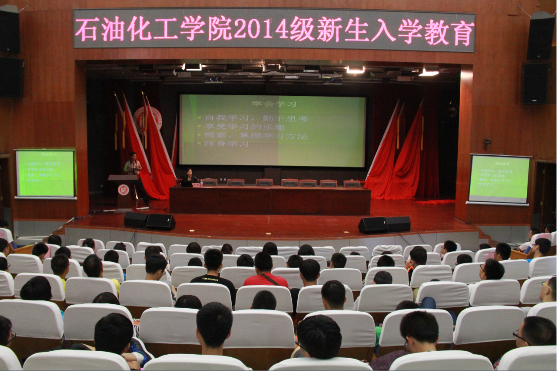 9月5日上午十一点,由石油化工学院主办的新生入学教育之人生规划教育活动在图书馆博学厅准时举行。院党委副书记刘玮老师、院团委书记兼2014级新生辅导员蒋林娟老师出席本次会议。会议由蒋林娟老师主持。