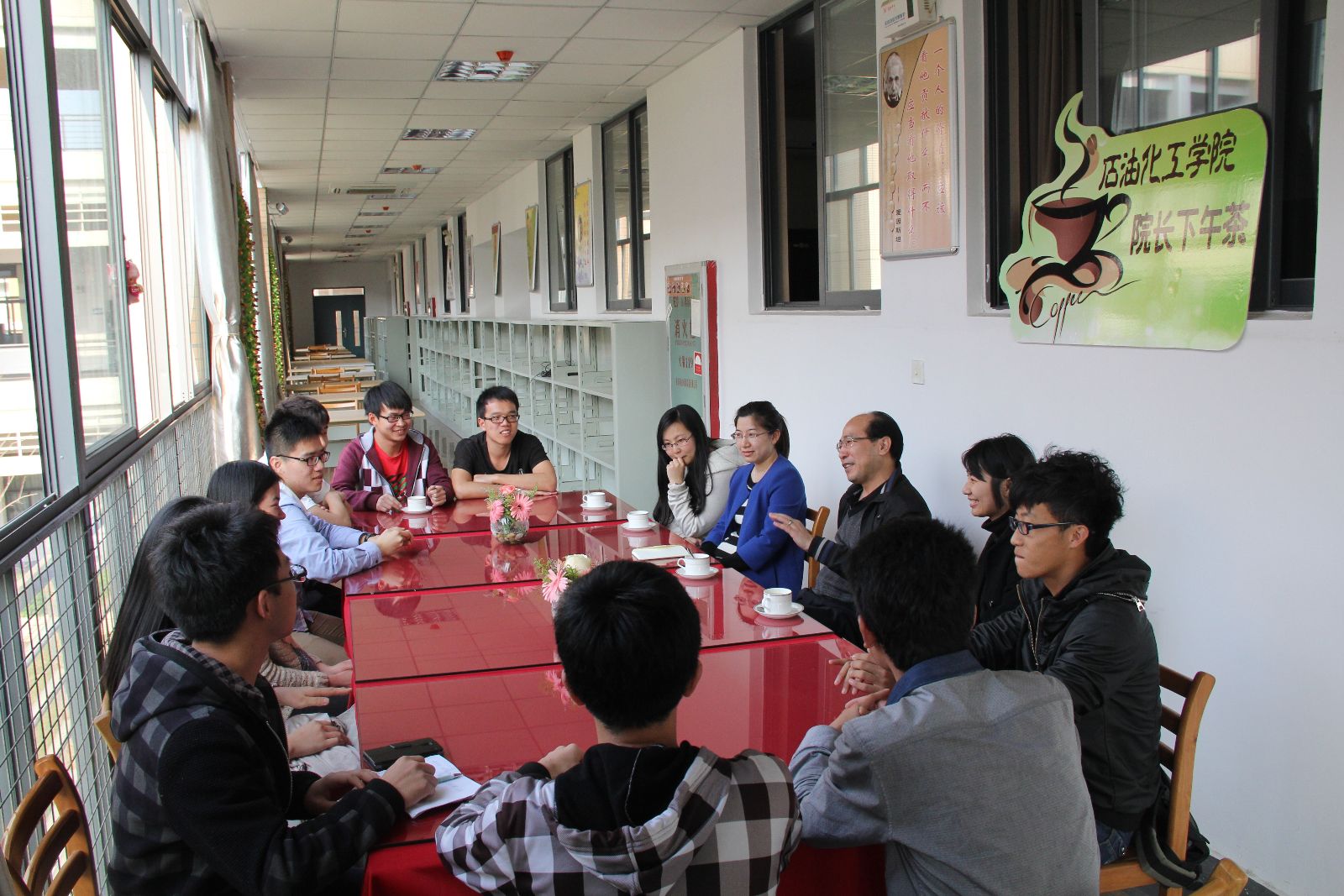 “院长下午茶”活动是石油化工学院贯彻落实党的群众路线教育实践活动的一项特色活动,旨在营造和谐氛围,加强互动沟通,促进情感交流,为老师与学生的相互了解搭建平台,切实帮助师生解决日常工作、学习、生活中遇到的实际问题。