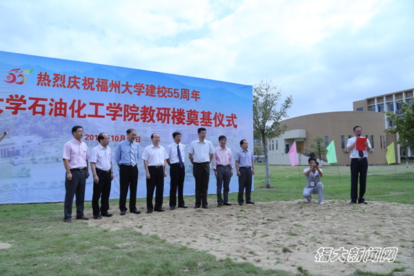 校长付贤智院士,副校长范更华教授以及学院领导及师生代表60余人出席了奠基仪式,学院党委石炳文书记主持奠基仪式,领导嘉宾共同为石油化工学院教研楼培土奠基。