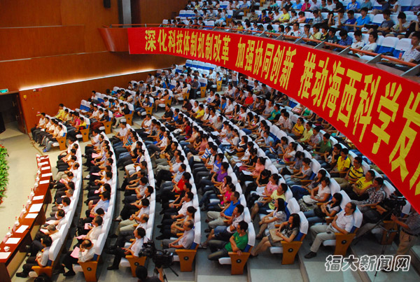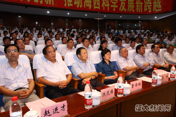 陈桦副省长、曹保榆将军、舒兴田院士、付贤智校长共同为中心揭牌 记者 李连富 摄