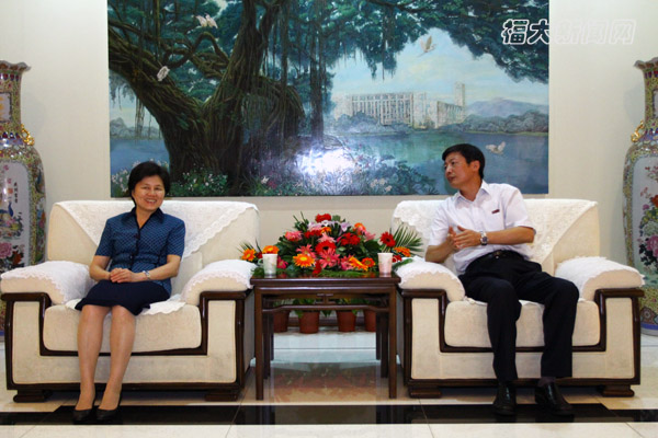 揭牌仪式前,付贤智校长与陈桦副省长进行亲切交谈 记者 李连富 摄