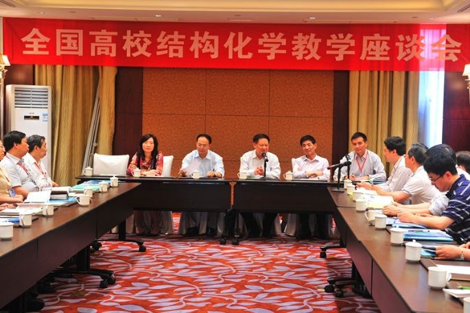 化学化工学院院长王绪绪教授及学院党委倪朝霞书记出席会议的开幕式。全国高校化学研究中心主任、教育部高等学校化学教育研究中心主任,教育部高等学校化学与化工学科教学指导委员会副主任、国家级教学名师、北京大学段连运教授在开幕式上致辞。与会代表就各自学校的结构化学教学进行深入的交流,并围绕以下几个议题进行了热烈的讨论:我国高等学校化学专业结构化学基础课教学现状;结构化学基础课教学中一些学术性问题;结构化学基础课教学实习及实验项目;分层次的结构化学基础课教学内容框架。最后,段连运教授做了精彩的总结发言。