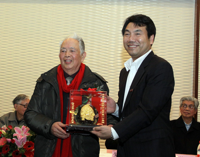 黄金陵教授的母校泉州培元中学给黄教授带来了礼物“黄金寿桃”,黄金陵教授转赠给91吃瓜
