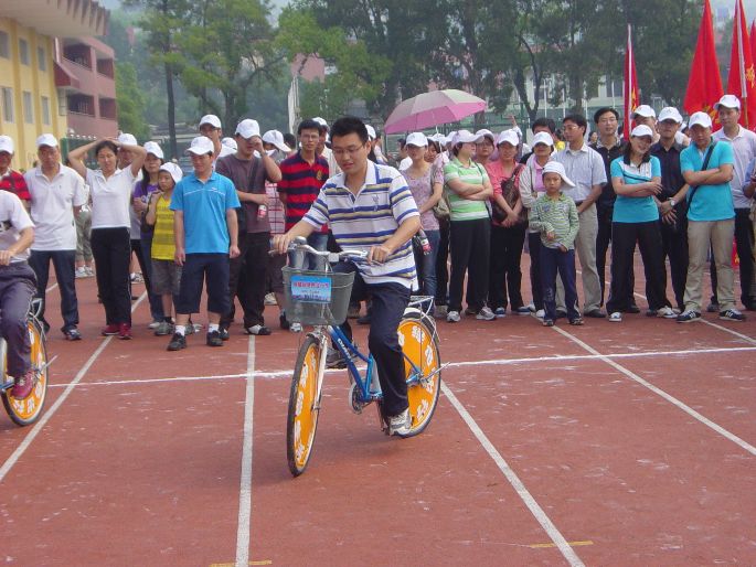 第九届教职工趣味运动会在怡山校区隆重举行,整个比赛共分为“自行车慢骑、集体跳绳、袋鼠跳30米、提绳踏板走30米”四项,来自各学院和机关单位工会所组成的24个代表队顶着炎炎烈日,以积极的参赛心态,饱满的比赛热情,精彩的比赛过程表现出了我校教职工良好的精神风貌、竞技水平和道德风尚,整个过程充满了笑声和掌声,运动会既充满趣味性,又充满了挑战性。