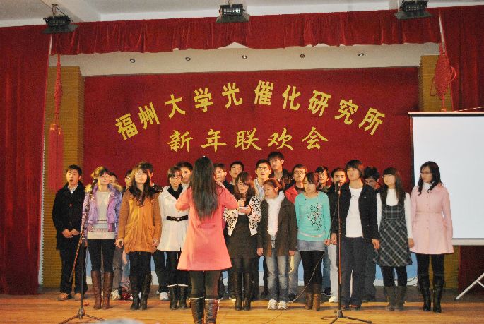 1月1日下午,怡山校区工会一楼会议厅内春意融融,笑语盈盈。光催化研究所2011年新年师生联欢会在这里举行,研究所全体师生员工欢聚一堂,共度新年。