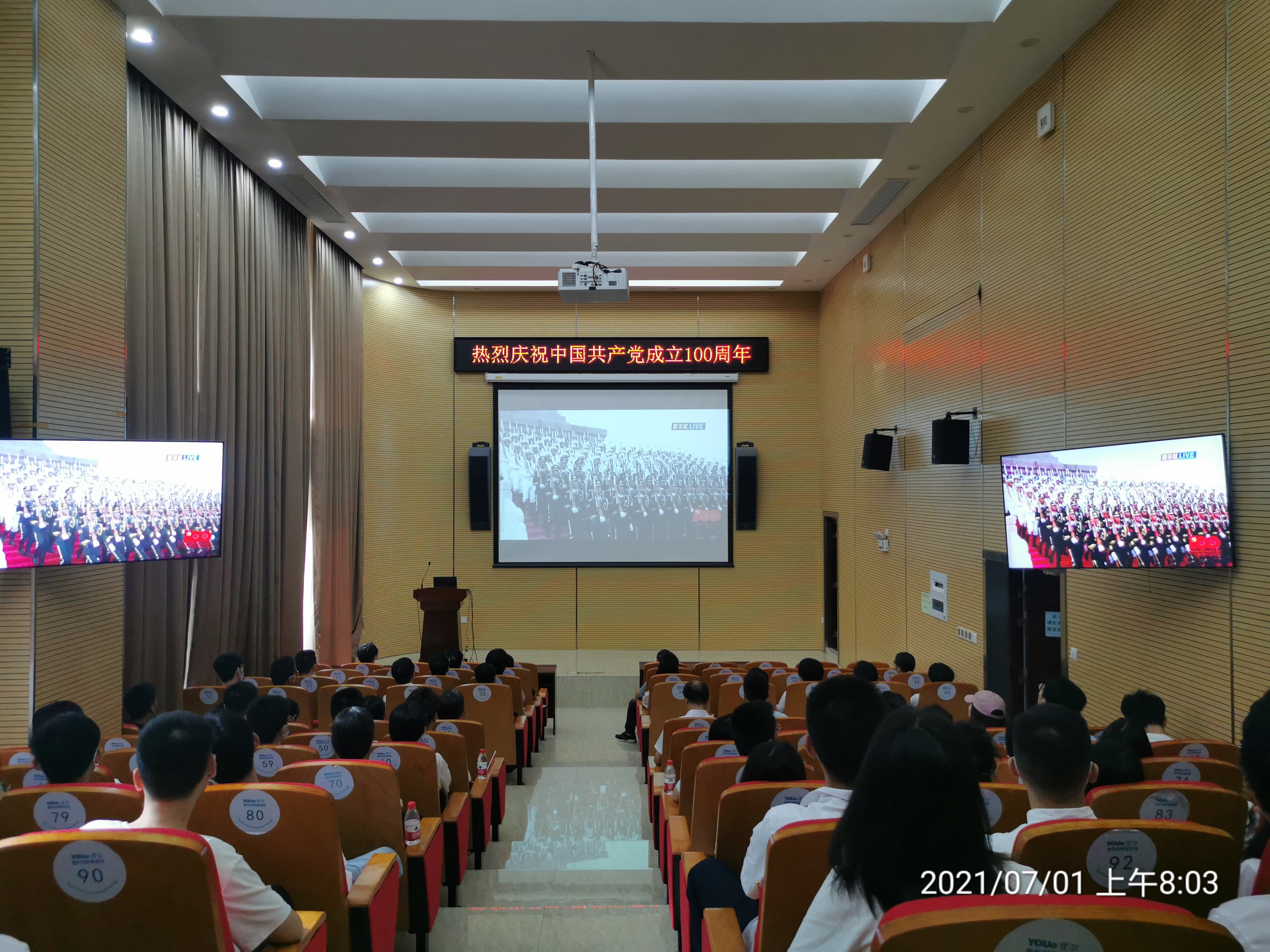 旗山校区和泉港校区两地党员和入党积极分子以及清源创新实验室全体党员同步收听收看直播盛况,见证激动人心的历史时刻。