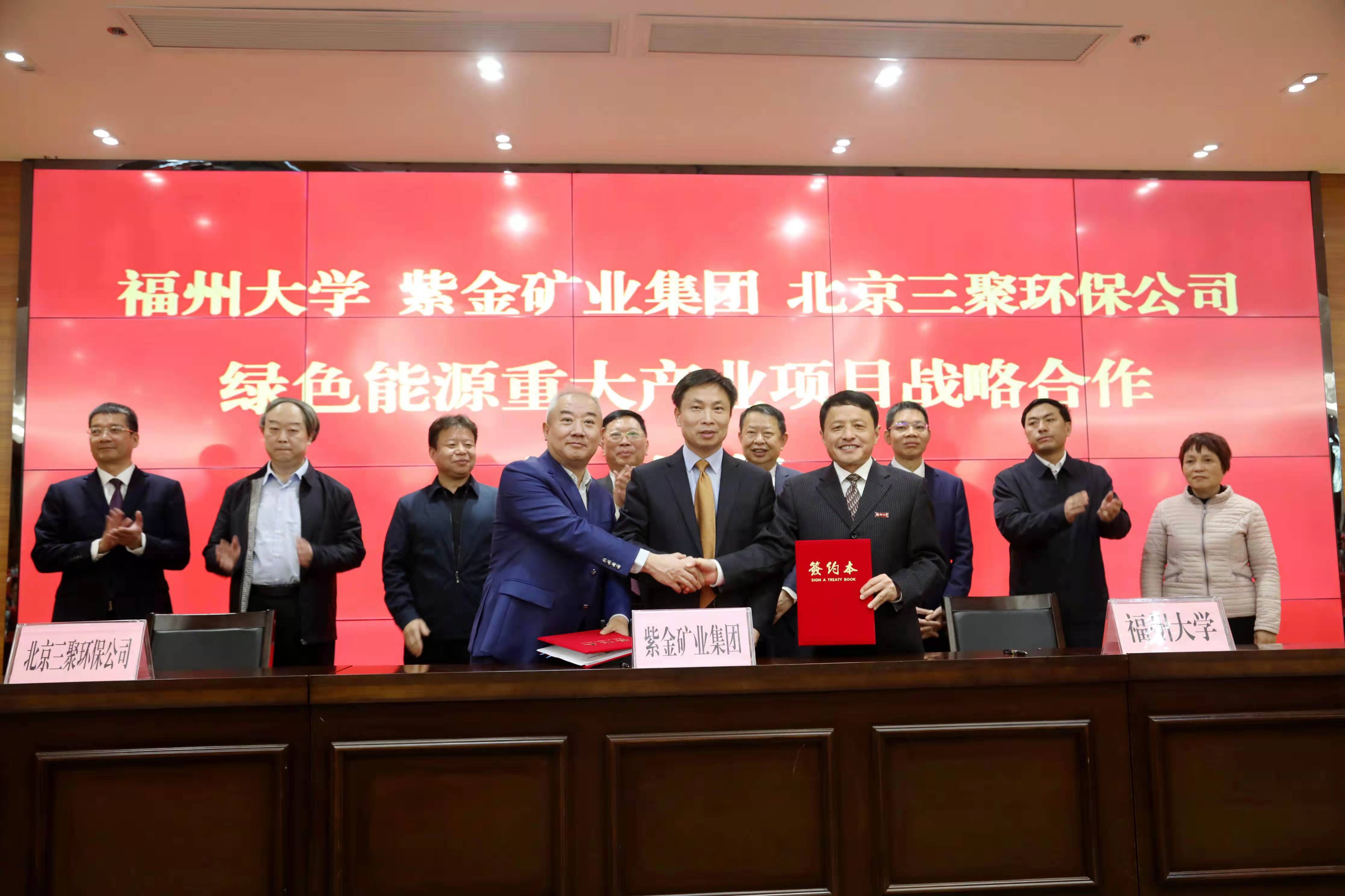 与紫金矿业集团股份有限公司、北京三聚环保新材料股份有限公司战略投资合作协议签约,与会领导嘉宾见证签约仪式。
