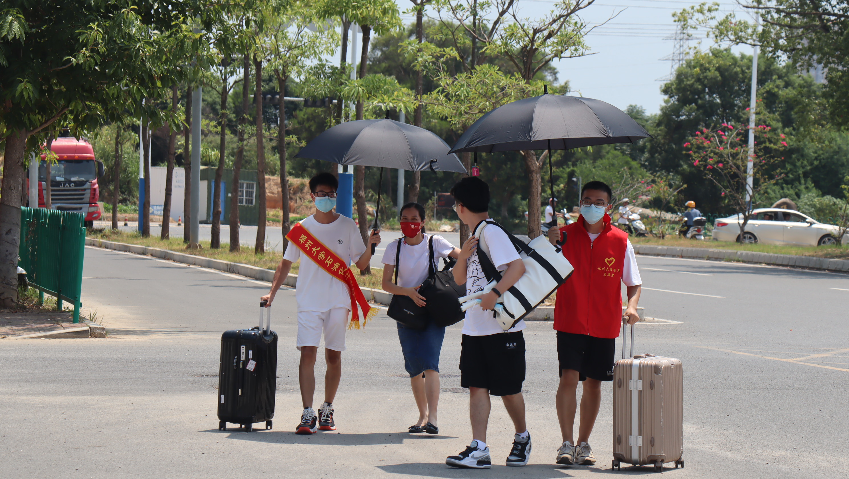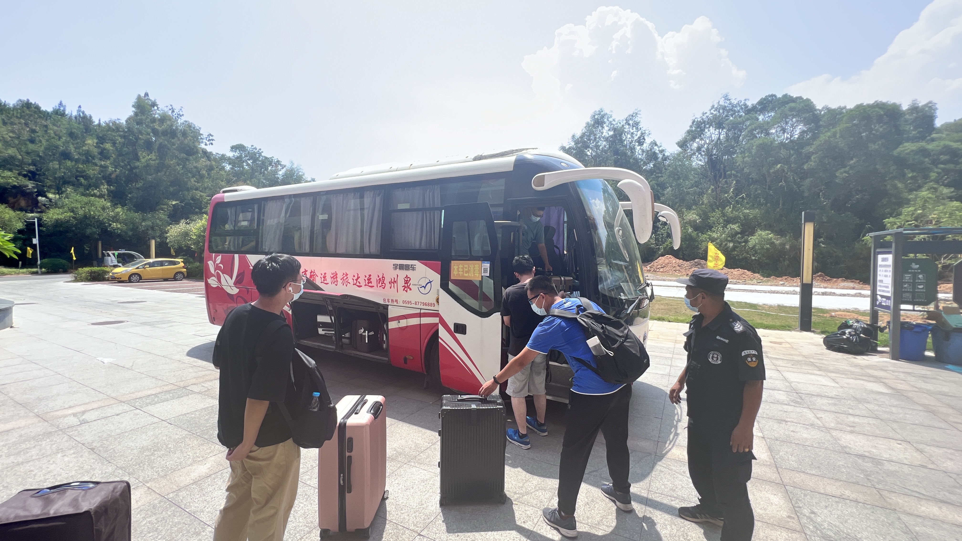 上午8点半,学生志愿者们前往泉州动车站迎接新生。在完成落地核酸检测后,校区安排专车将陆续到站的同学分批送到学校。