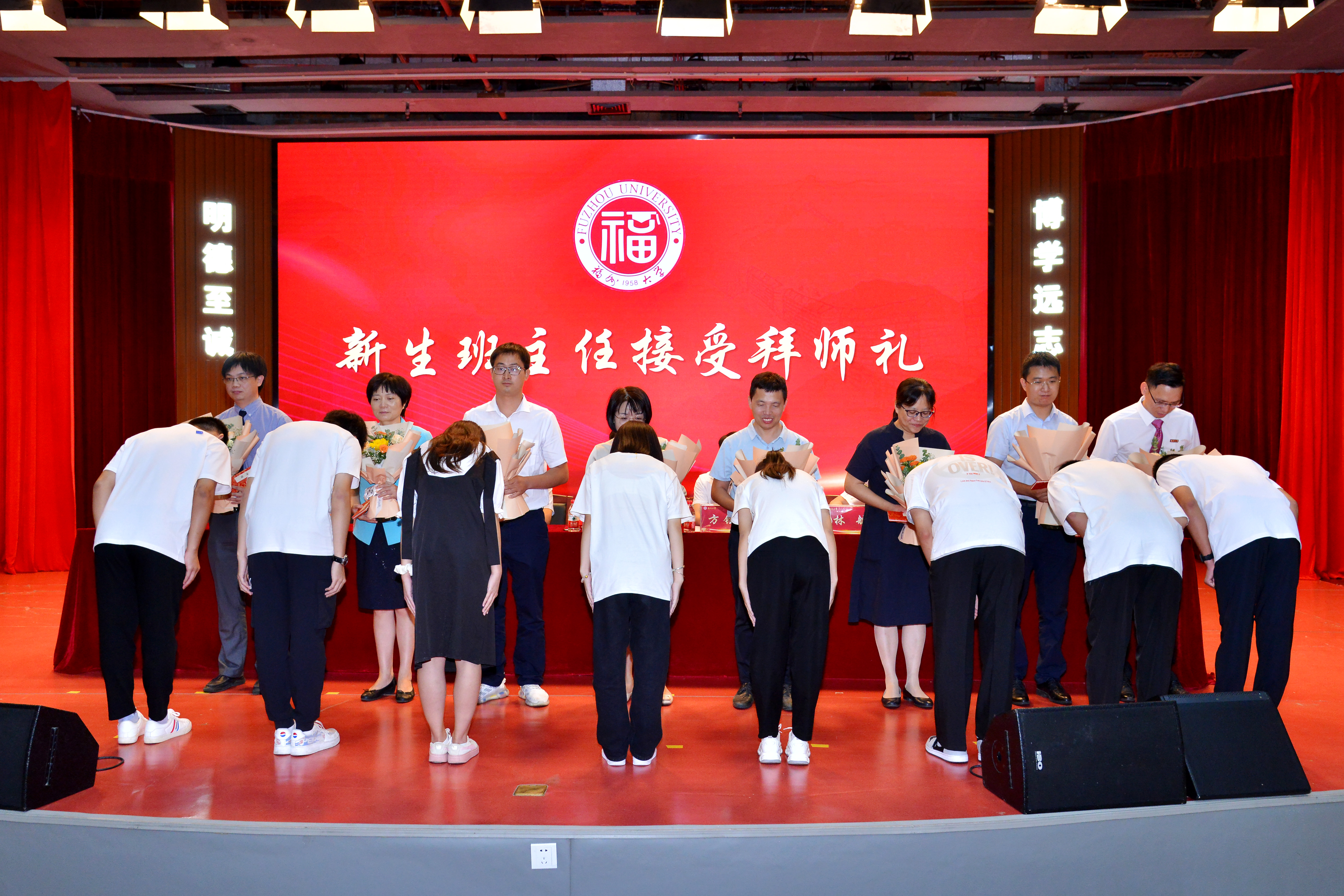 常务副院长侯琳熙教授宣布2022级本科新生班主任名单,并举行拜师礼,学生代表向班主任敬上拜师贴和鲜花。