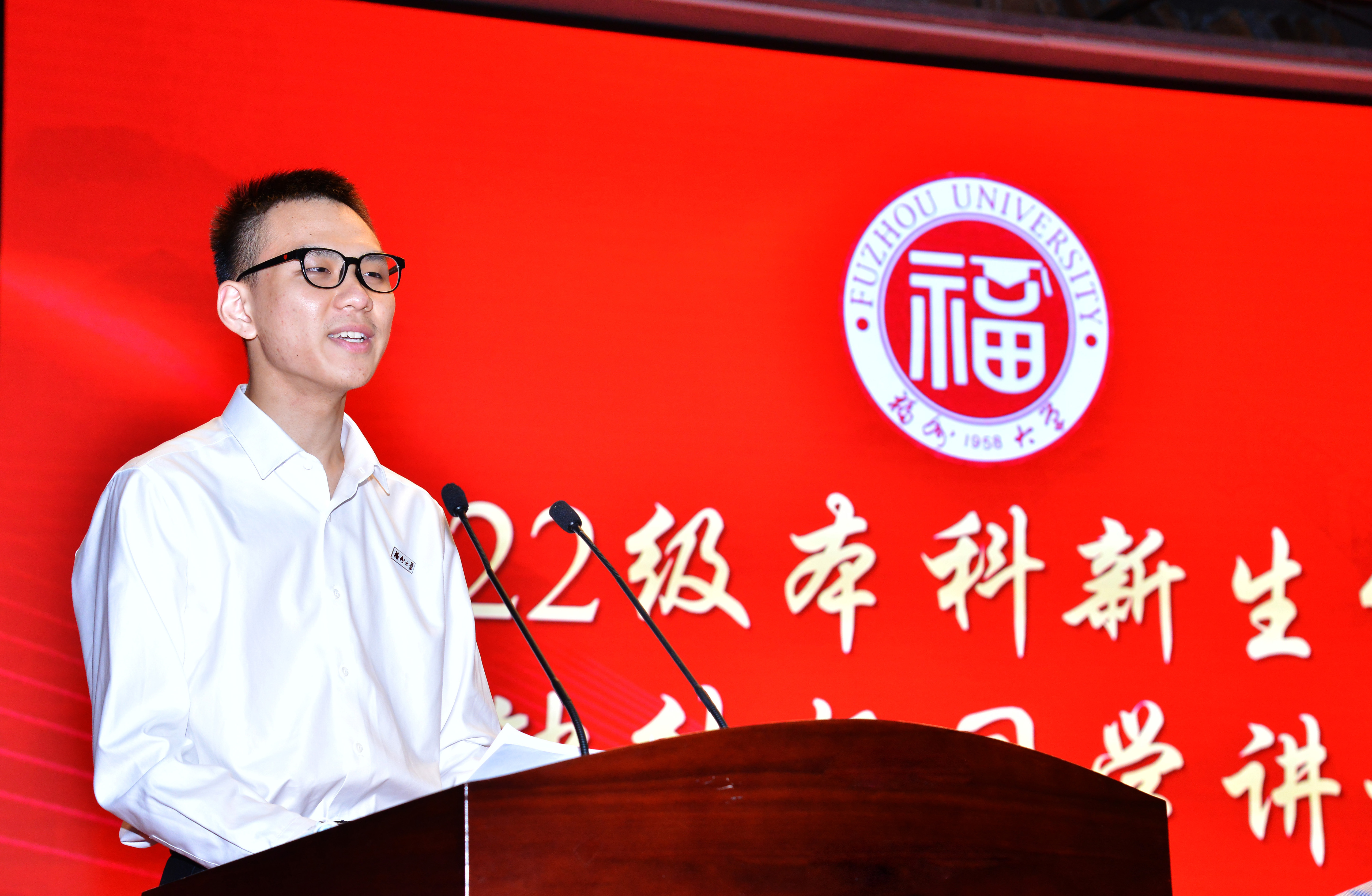“三种精神”来鼓励同学们。作为研究生的黄乐文,他紧紧围绕科研,鼓励同学们要保持自己的初心、恒心和好奇心,脚踏实地、心无旁骛地做好科研,展现当代石化青年的责任担当;而作为一名新石化人的钟升扬,则引用习总书记“奋斗是青春最亮丽的底色”这一句对青年的寄语,与同学们共勉,他希望初入大学的同学们可以不为外物所动、潜心学习,以青春之我、奋斗之我,努力在实现中国梦的伟大实践中创造自己的精彩人生,真正做到“请党放心,强国有我”