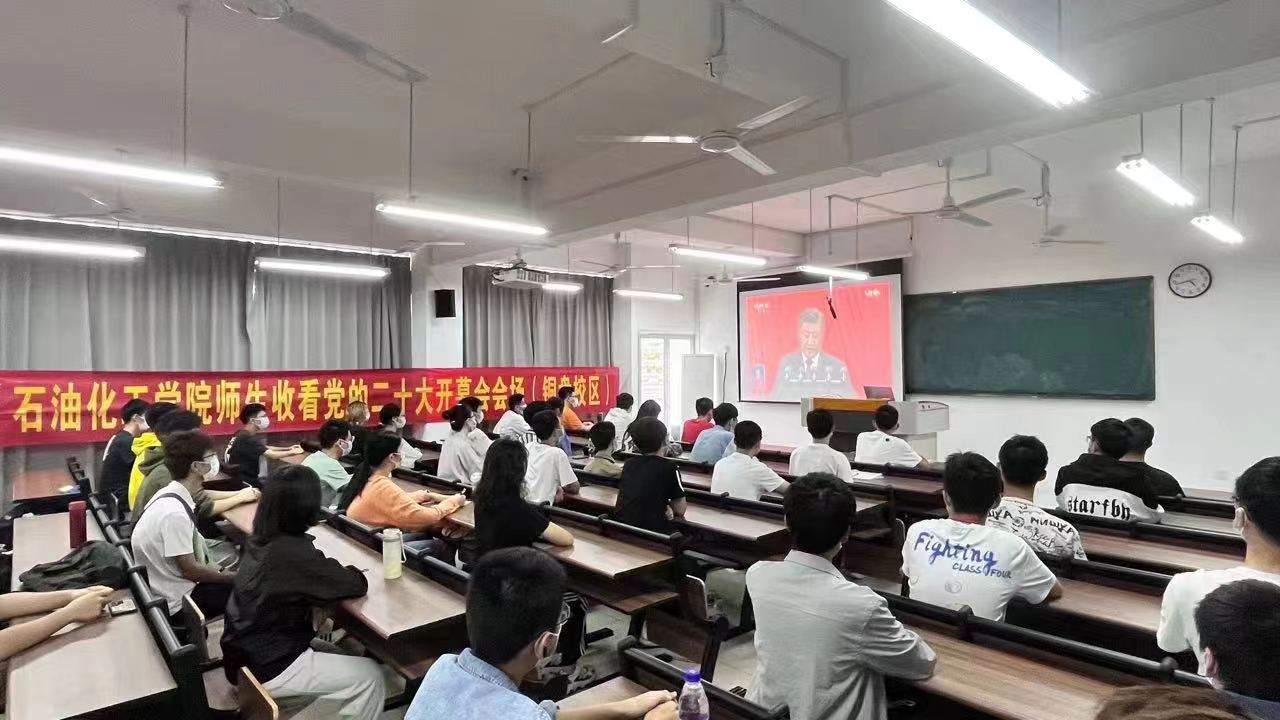党的二十大是在全党全国各族人民迈上全面建设社会主义现代化国家新征程、向第二个百年奋斗目标进军的关键时刻召开的一次十分重要的大会。我们将进一步深刻学习领会党的二十大精神,全面贯彻习近平新时代中国特色社会主义思想,统一思想认识,提高政治站位,深刻领悟“两个确立”的决定性意义,自觉增强“四个意识”,坚定“四个自信”,做到“两个维护”。大力弘扬伟大建党精神,始终坚守为党育人初心、始终牢记为国育才使命、始终坚持立德树人根本。坚持把党的二十大精神的丰富内涵融入科教兴国、人才强国、化工报国全过程。自立自强、守正创新、踔厉奋发、勇毅前行,保持工作高标准、服务高质量、作风新高度,蹄疾步稳走好化工学科高质量发展道路,奋力推进“一流学科”建设,在全面建设社会主义现代化国家的新征程上书写石油化工学院崭新篇章!