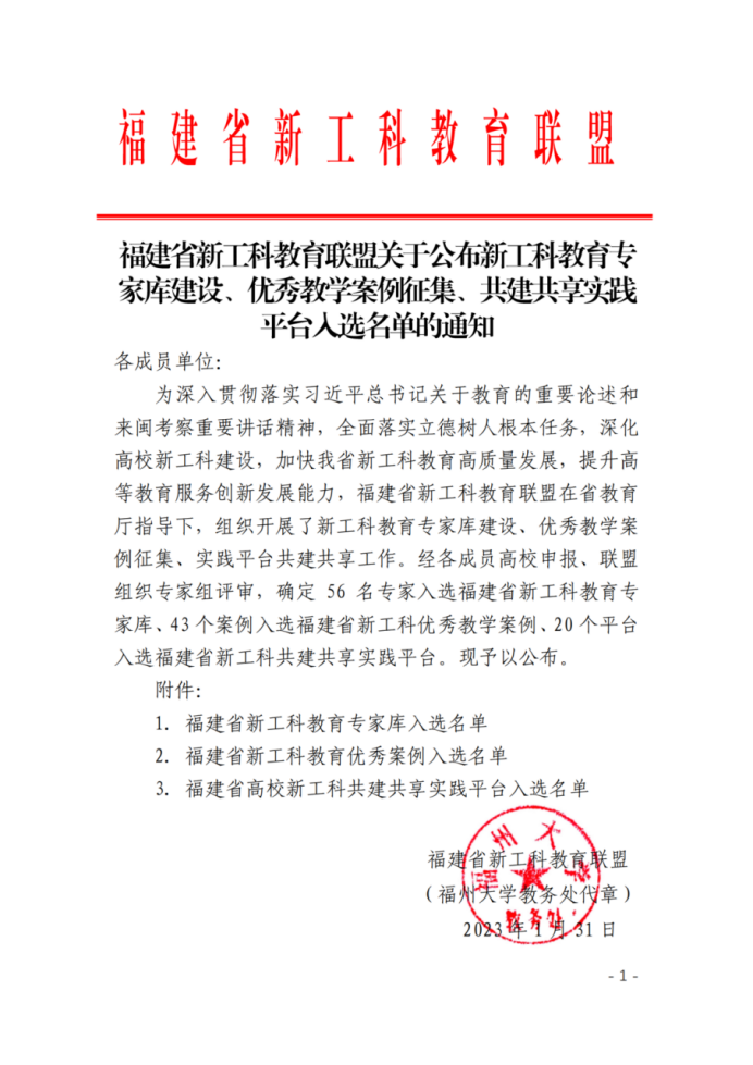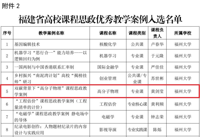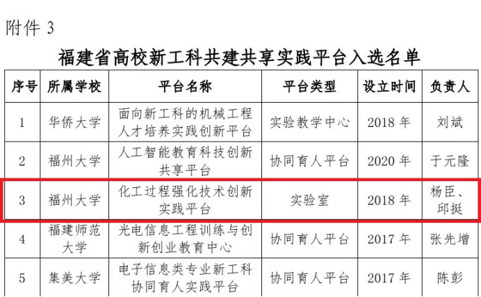 近日,福建省新工科教育联盟和福建省高校课程思政教育联盟先后公布了福建省新工科教育专家、新工科教育优秀案例、共建共享实践平台和福建省课程思政专家库、课程思政优秀教学案例入选名单的通知,91吃瓜 邱挺教授和杨臣教授负责的“化工过程强化技术创新实践平台”入选福建省高校新工科共建共享实践平台,黄剑莹教授的“双碳背景下‘高分子物理’课程思政教学案例”入选福建省高校课程思政优秀教学案例。