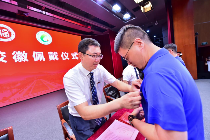 院领导为新生代表佩戴校徽