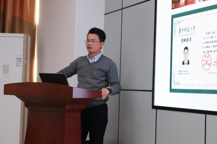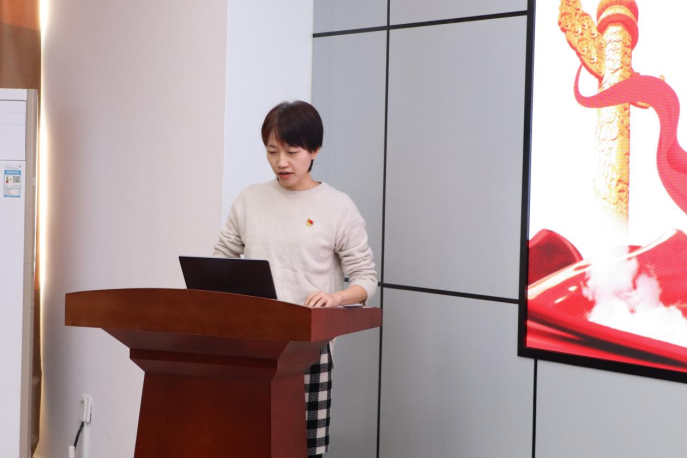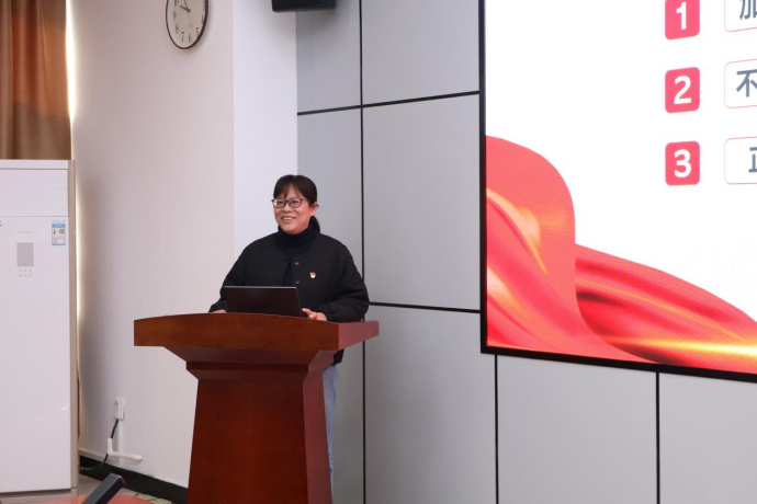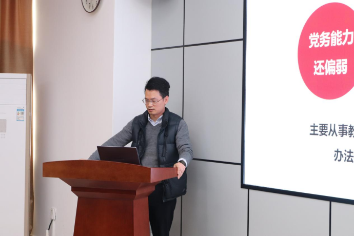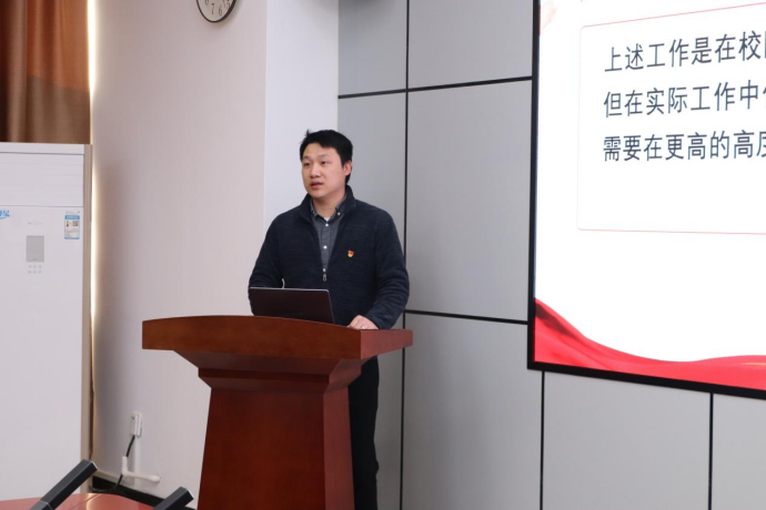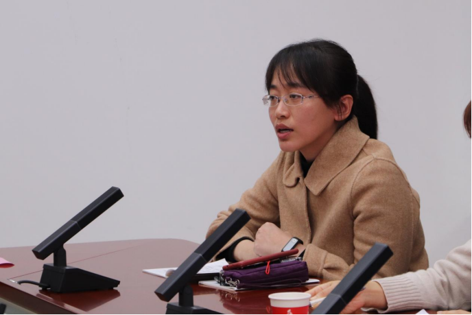 校党委组织部林舒老师向与会人员传达学校相关方面的政策与要求
