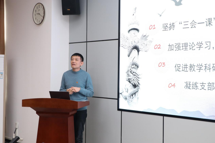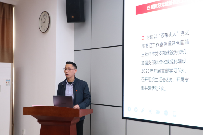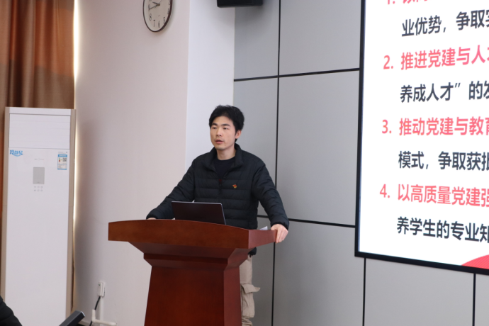 院党委林航书记充分肯定了各教工支部2023年的工作,对支部书记述职进行点评并对2024年工作提出了要求和期望:一是以高质量党建引领科研创新,将学科建设与支部建设相结合,做有组织的科研,服务好国家科技奖申报、国家重点实验室重组和科研项目申报;二是推进党建与人才工作相融合,引育结合,积极主动吸引人才,服务国家级、省级人才培养,做好教师队伍的梯队建设;加强立德树人,强化课程思政,为党的事业培养可靠接班人;三是推动党建与教育教学相结合,加强国家一流课程建设和教材出版工作,积极参与教育改革大讨论,推动教学改革,完善拔尖人才培养体系;四是以高质量党建强化学生工作,积极指导学生参加科研训练和学科竞赛、参加境外学习交流和国际学术会议报告,提高学生的科研能力和就业能力。