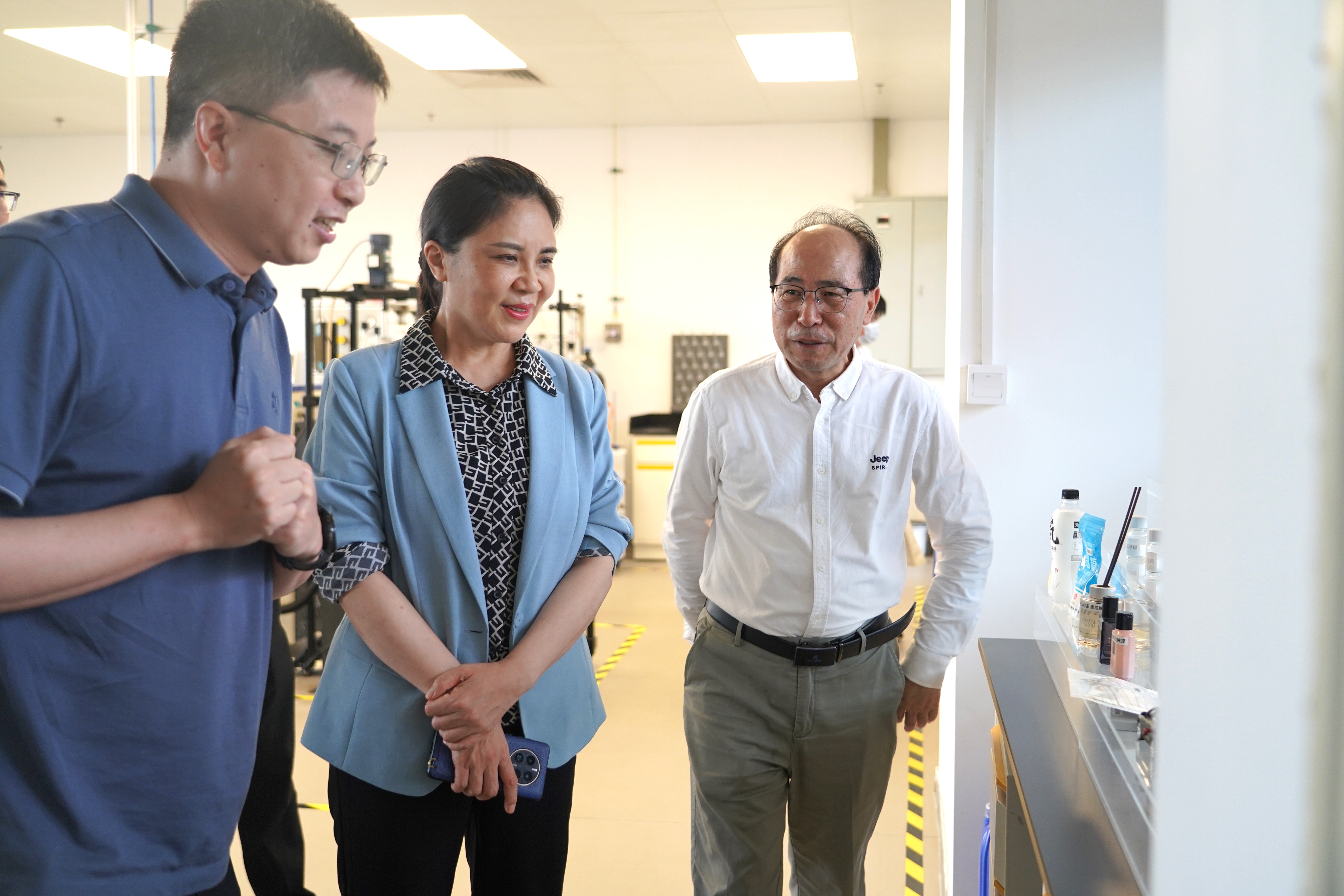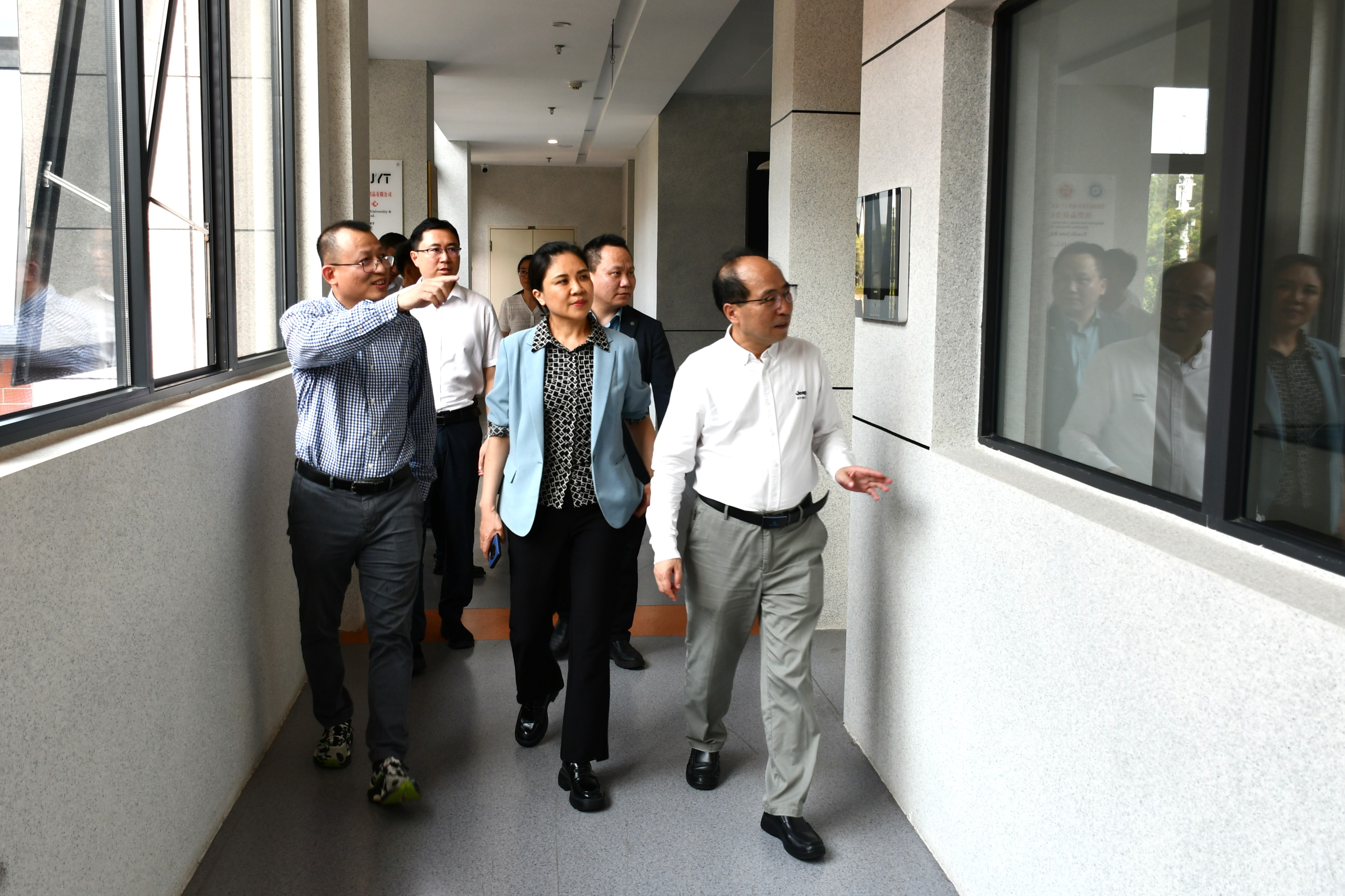 清源实验室执行主任鲍晓军教授向吴校长一行介绍科研成果产业化情况