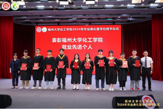 随后,化工学院副院长梁诗景教授宣读授予学位决定、2024届优秀毕业生表彰决定、2024届本科毕业生就业升学先进个人表彰决定。领导嘉宾为优秀毕业生、就业升学先进个人颁发荣誉证书。