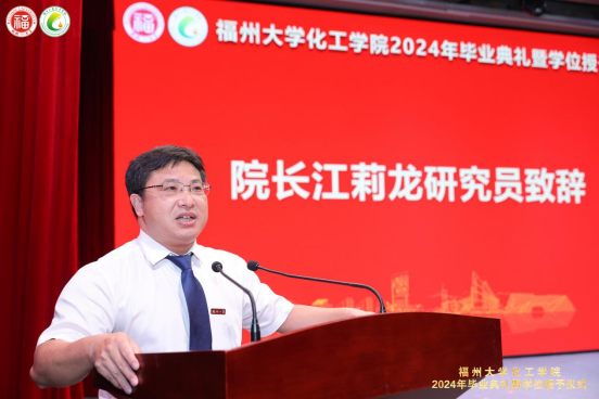 化工学院院长江莉龙研究员向毕业生们顺利完成学业、踏上人生新旅程表示热烈祝贺。临别之际,江院长向同学们提出三点建议: