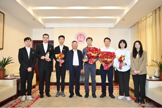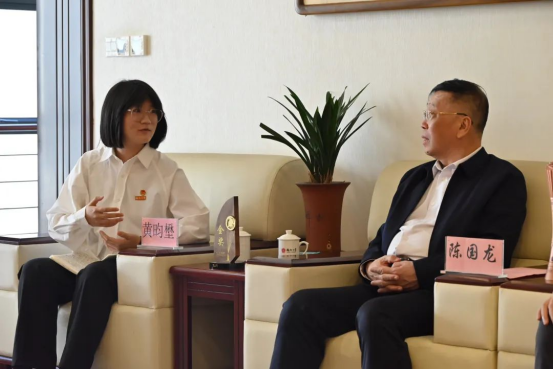 全国第十四届“挑战杯”秦创原中国大学生创业计划竞赛参赛团队载誉归来座谈会在旗山校区举行。校党委书记陈国龙向获奖师生表示祝贺并勉励师生要踔厉奋发、勇毅前行,项目负责人黄昀壄作为获奖学生代表向国龙书记汇报竞赛的收获与感想。