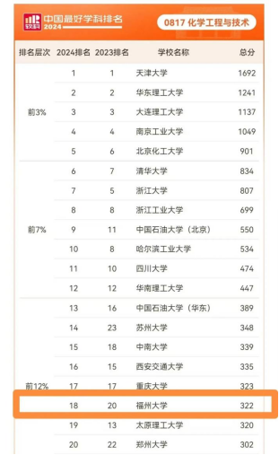 “化学工程与技术”学科在参评院校中排名第18名,位列全国前12%!