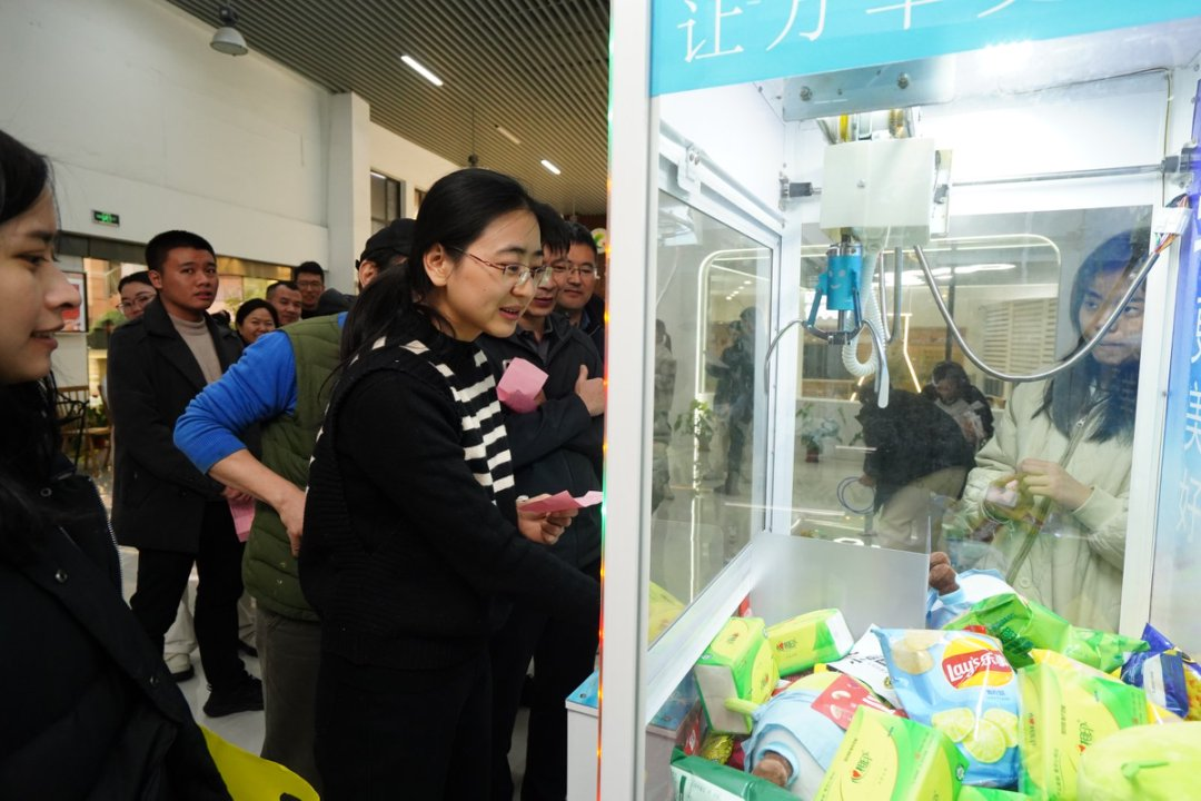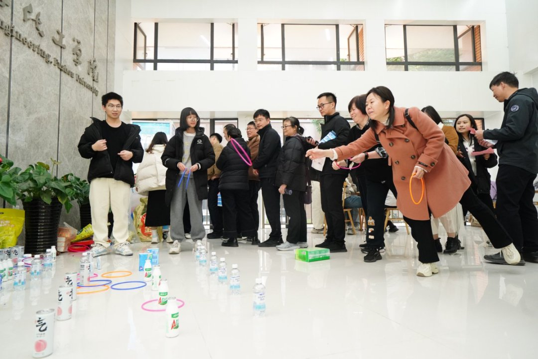 会后,学院举行迎新年游园活动。本次游园活动包括拔河比赛、学习强国双人对战、一分钟运动挑战、精准投篮、环环相扣、抓娃娃等多个项目,整个活动过程欢声笑语不断,洋溢着轻松喜悦的氛围。