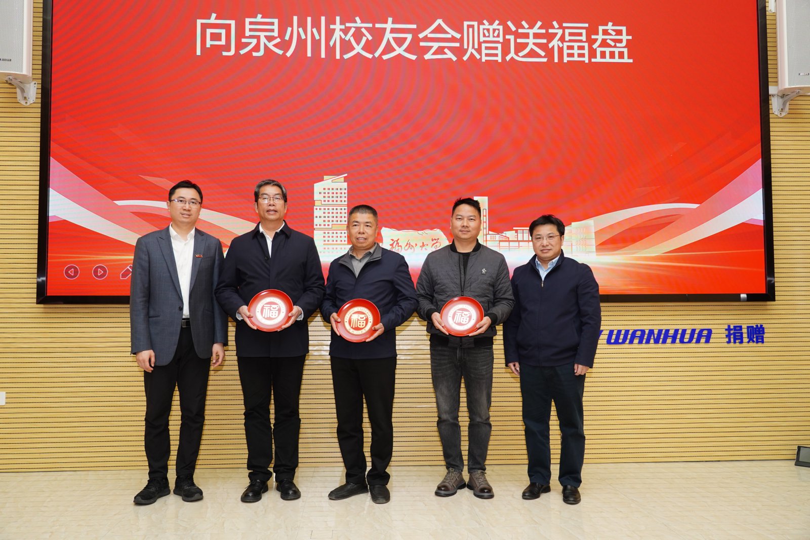 江莉龙副校长向校友会代表赠送福盘