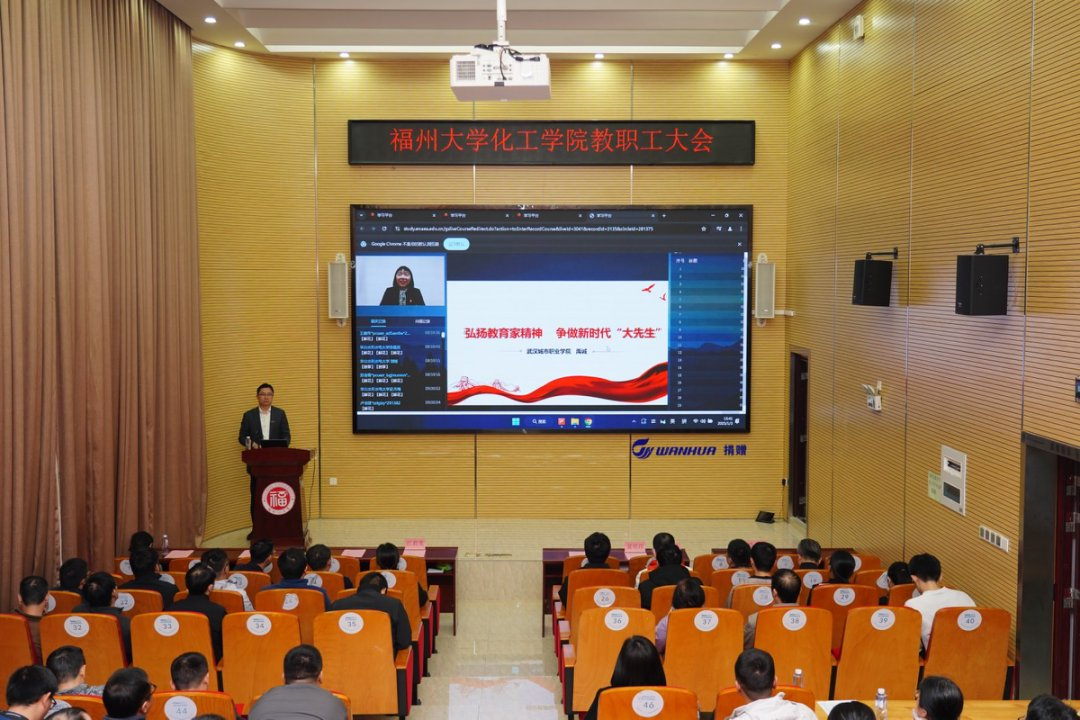 校党委常委、副校长江莉龙作指导讲话。他指出,2024年是实现“十四五”规划目标任务的关键一年。一年来,化工学院紧紧围绕立德树人的初心和使命,全面推动化学工程与技术“一流学科”培育建设,为学校加快推进“双一流”建设,深入实施“1445战略工程”做出重要贡献。希望化工学院领导班子和全体教职工在新的一年继续坚持以习近平新时代中国特色社会主义思想为指导,深入贯彻落实习近平总书记来闽考察重要讲话精神和全国教育大会精神,牢记为党育人、为国育才使命,坚守特色道路,强化内涵建设,围绕全国重点实验室等重要平台,加强有组织科研和产业服务,为建设中国特色化工领域世界一流学科,扎实推动教育强国、实现中华民族伟大复兴不懈奋斗!