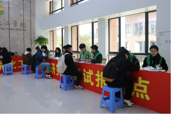 在考生报到处,吴明红校长听取了学院林航书记和梁诗景副院长关于研究生复试的招考规模、报到流程、考场布置等工作汇报,对学院复试工作的精心组织和规范管理给予了充分肯定。