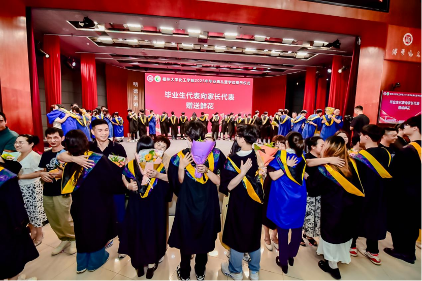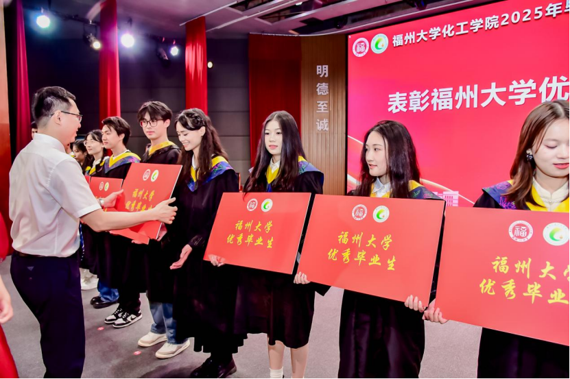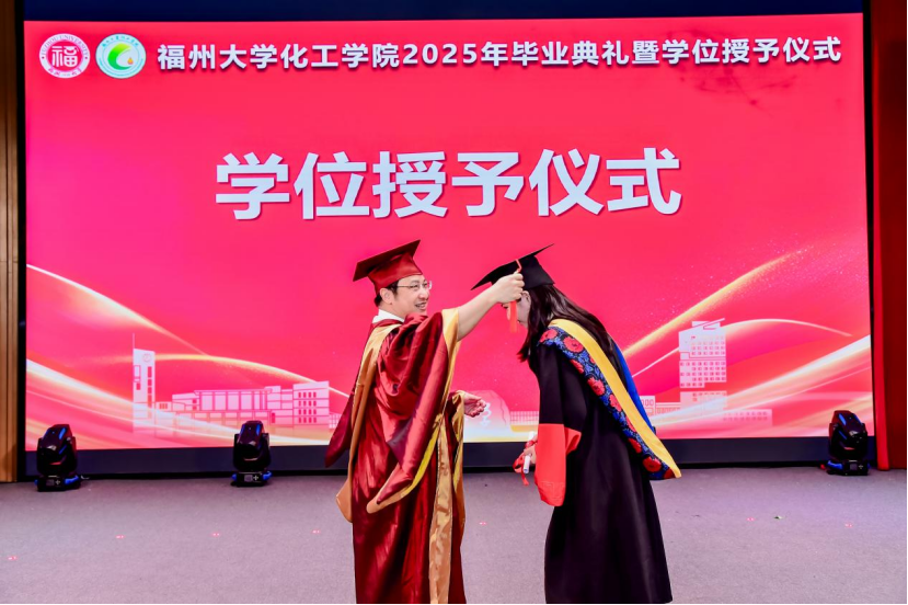 研究生代表陈敏丹深情回忆了在化工的成长旅程,号召同学们无论投身科研攻坚还是基层奉献,都要带着三种精神的传承,践行福大化工人的使命担当。本科生代表王亮在发言中分享了四年的成长故事,感恩母校培养与师长教导,即将赴华中科技大学深造的他表示,将深耕能源化工领域,未来反哺母校