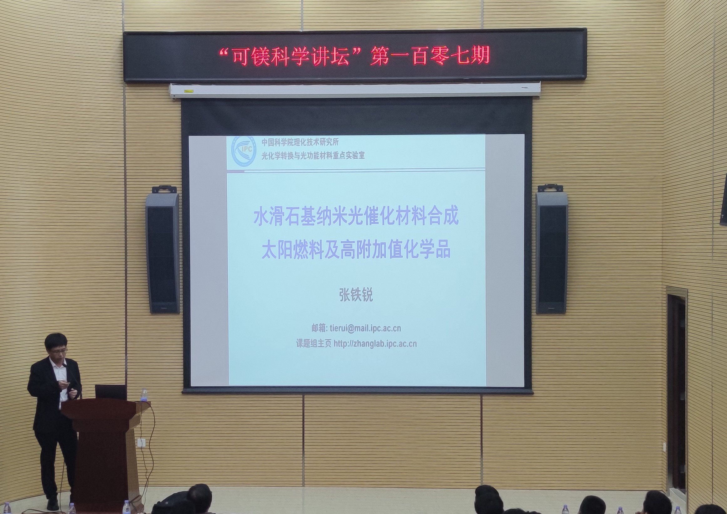 2020年11月14日,可镁讲坛迎来了第107期,来自中国科学院理化技术研究所的张铁锐研究员为福大师生带来了题为《水滑石基纳米光催化材料合成太阳燃料和高附加值化学品》的讲座,本次讲座由赖跃坤教授主持,有很多对本课题感兴趣的师生到场听取报告。