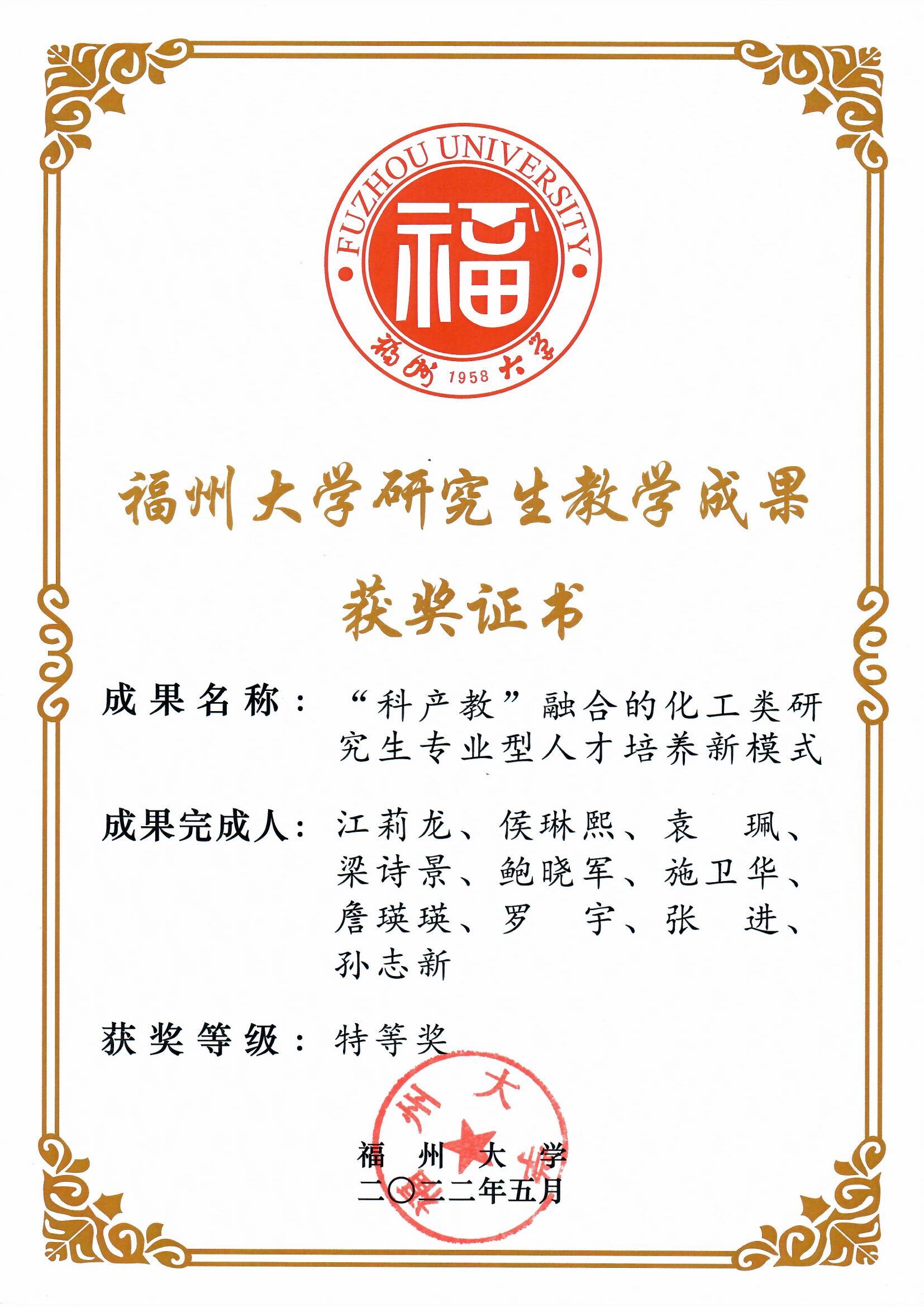 2022年91吃瓜 研究生教学成果特等奖
