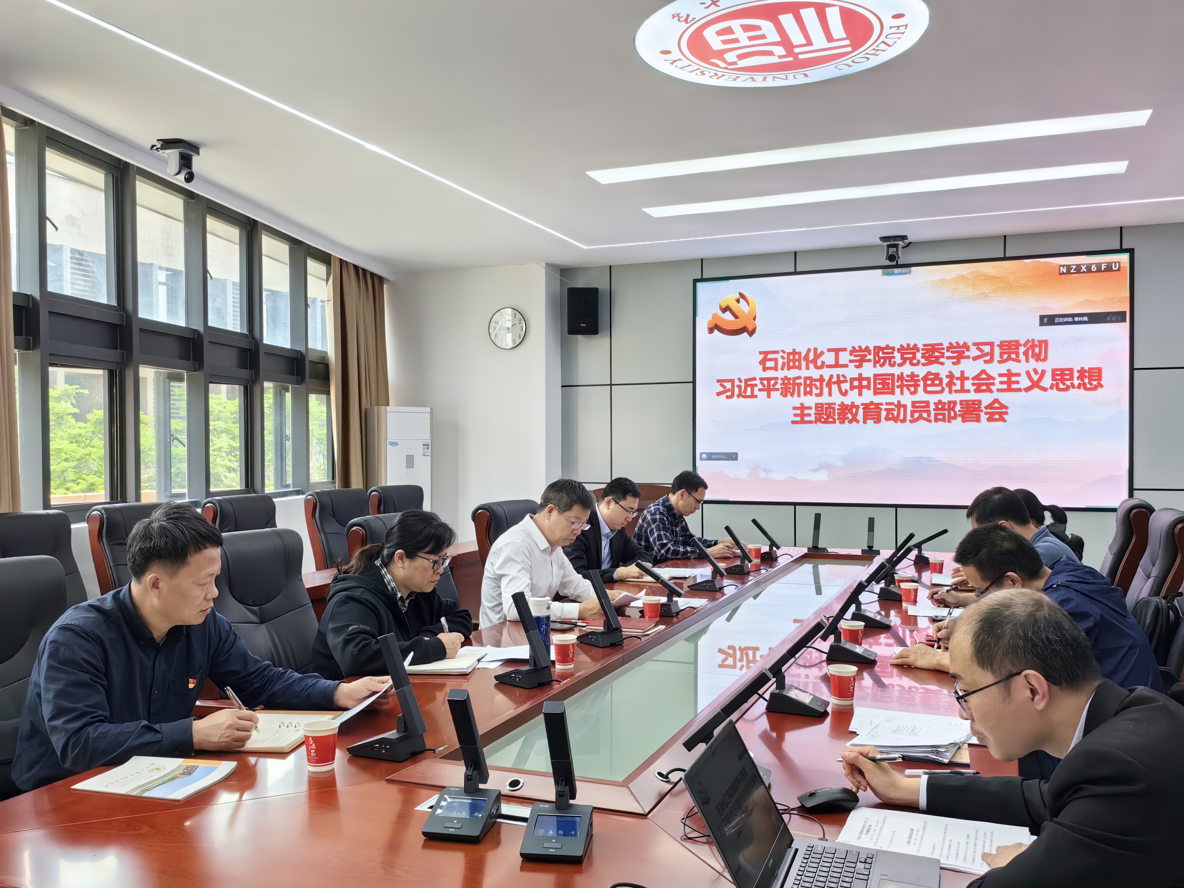 石油化工学院党委在旗山校区泉港楼第一会议室召开学习贯彻习近平新时代中国特色社会主义思想主题教育动员部署会暨基层党支部书记例会,以及主题教育读书班第一次集体学习。学院全体党政领导班子成员、科级以上干部、各党支部书记参加会议,党委书记施卫华主持了部署会。