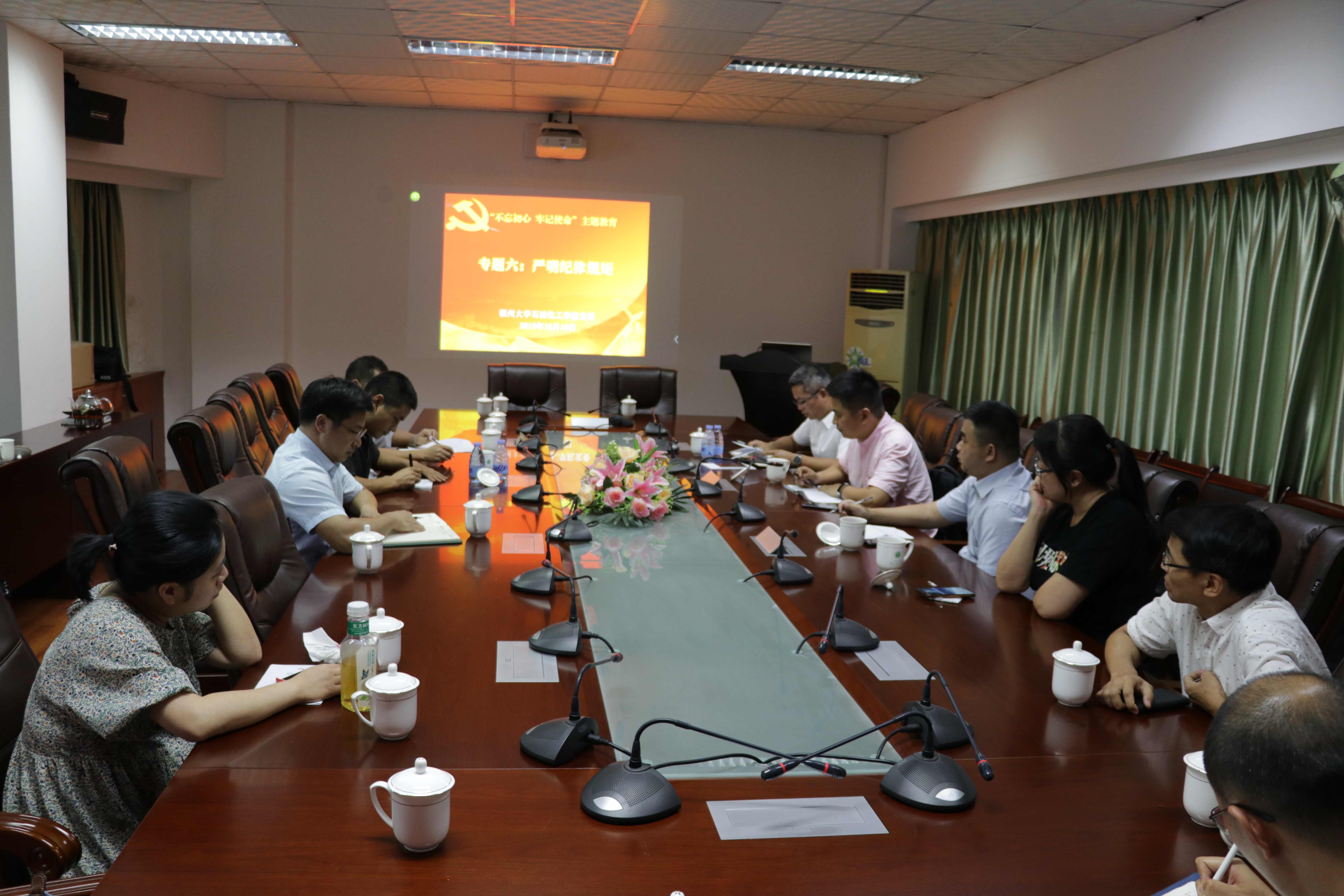 2019年10月10日下午17:00,石油化工学院根据“不忘初心、牢记使命”主题教育的工作安排,组织开展“严明纪律规矩”专题集中学习活动,学院副处级以上领导干部(含校聘)、党委委员和教工支部书记参加本次集中学习活动。