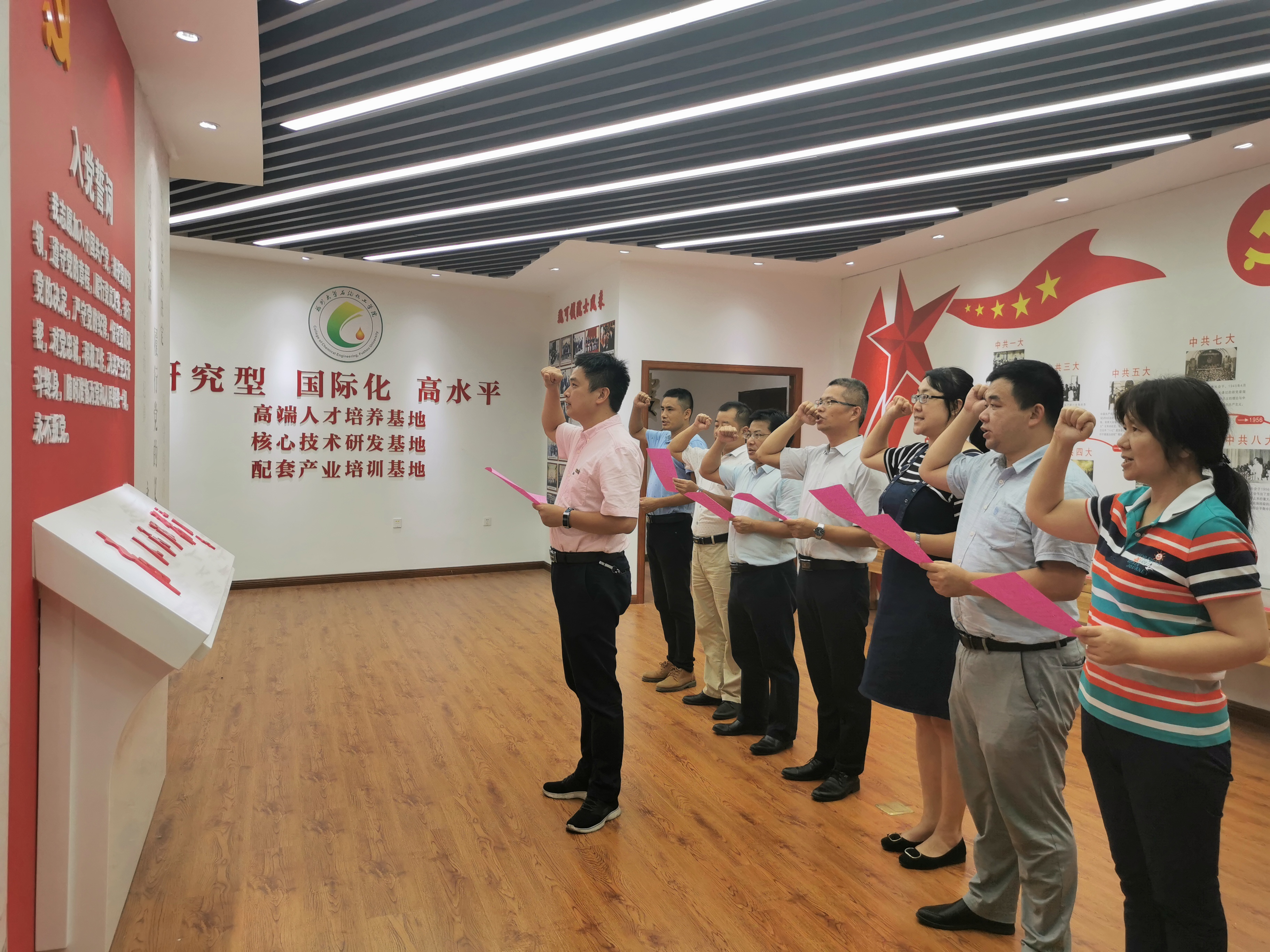 石油化工学院党委在学院泉港楼309初心堂举行“不忘初心、牢记使命”主题教育重温入党誓词暨专题研讨活动,学院党委书记叶志清、院长鲍晓军、常务副院长侯琳熙、党委副书记岳志强、党委委员江莉龙、赵素英、副院长袁珮、副院长陈全成、工催中心副主任许春华参加了专题研讨活动。