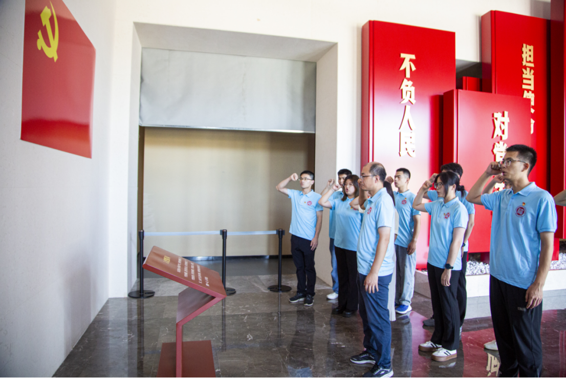 实践队全体党员在党旗前重温入党誓词,郑重宣誓。一句句誓词,一声声誓言,提醒着全体党员要自觉增强党员意识,牢记党员身份,把庄严承诺落实到日常言行,把“学纪、知纪、明纪、守纪”铭记于心。